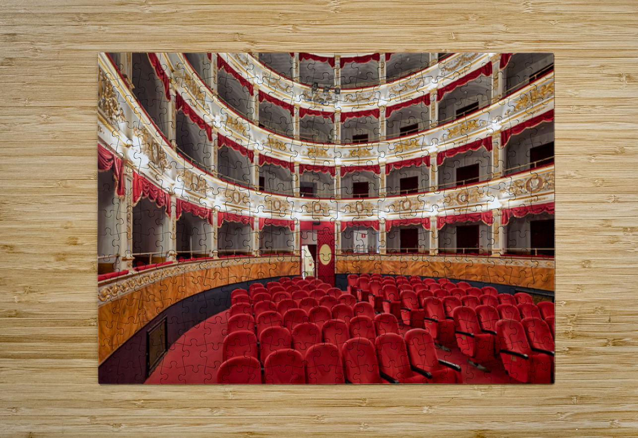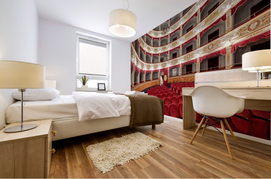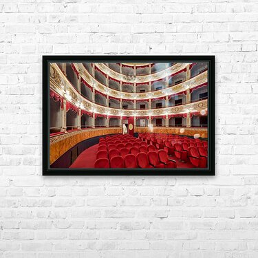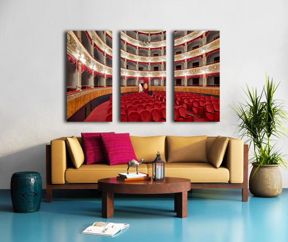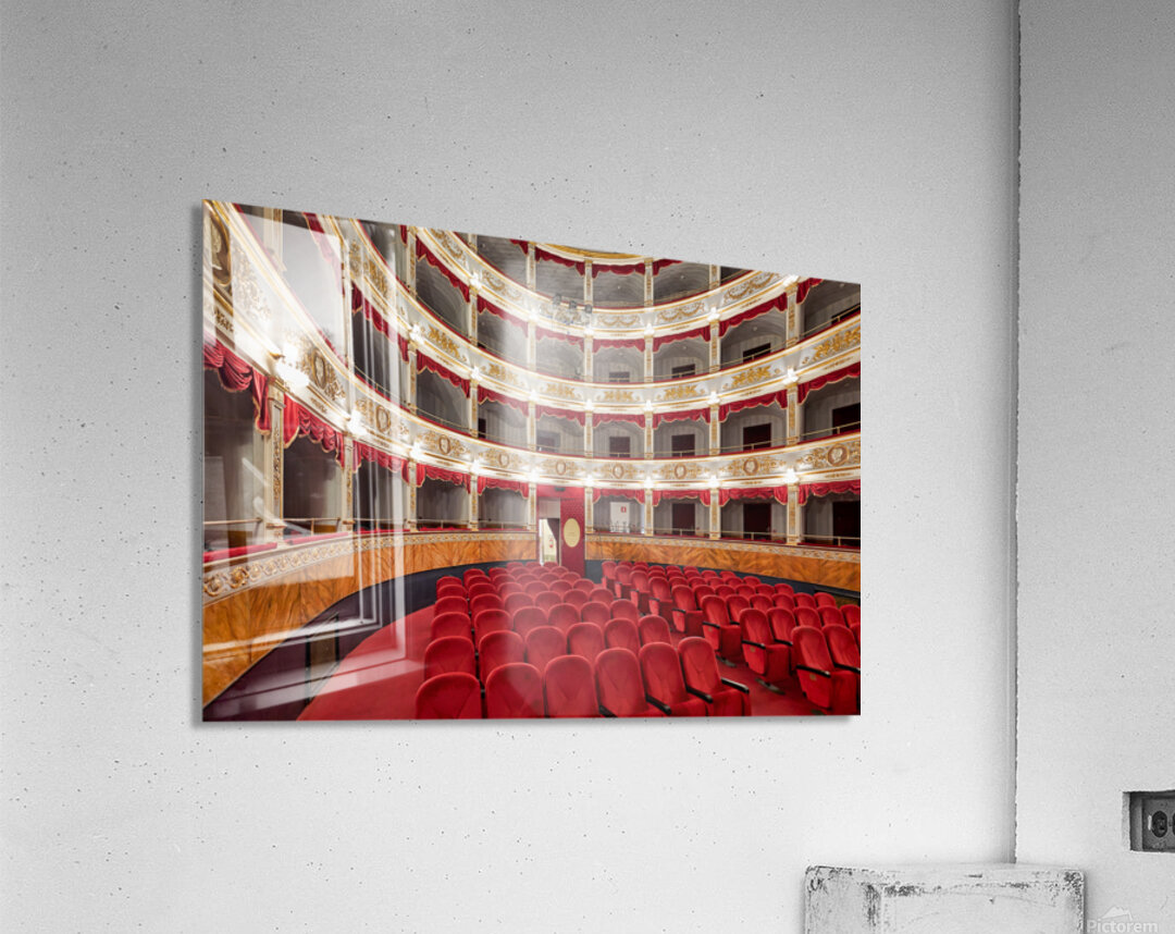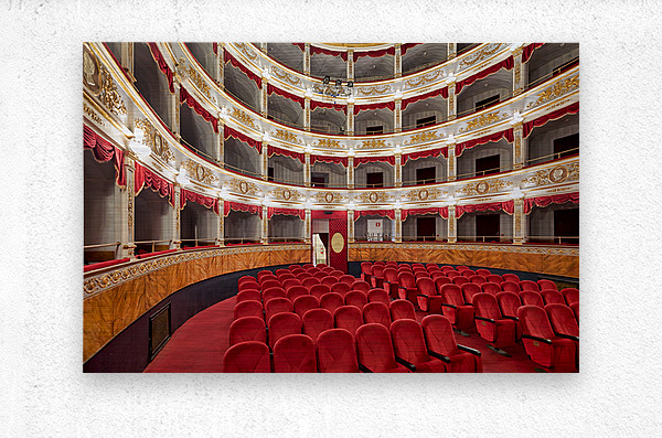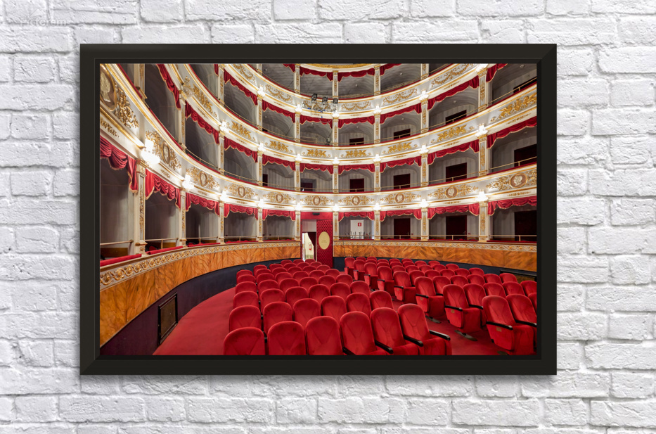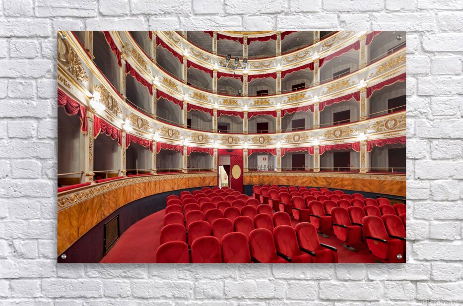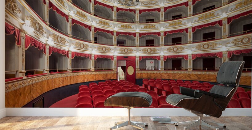 Visitors enjoy a performance at Teatro Tina di Lorenzo in Noto Sicily. The theater has many seats and detailed decorations throughout.