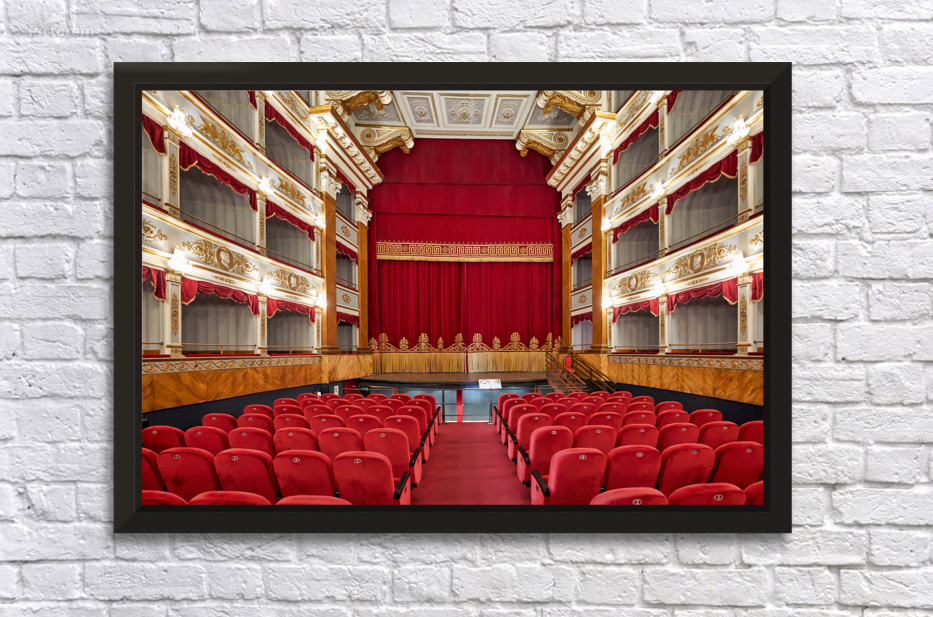 "Explore Teatro Tina di Lorenzo in Noto Sicily during a theater " in a framed print.