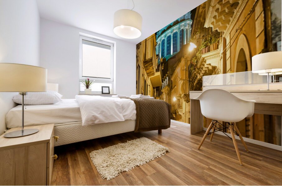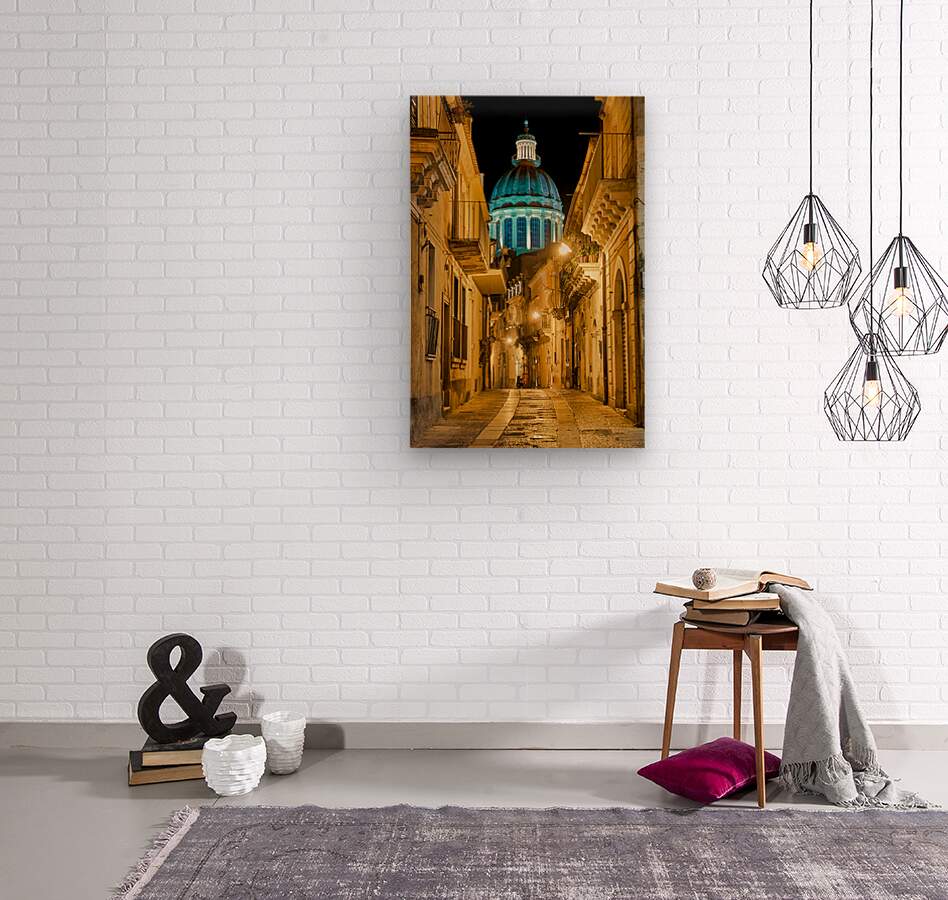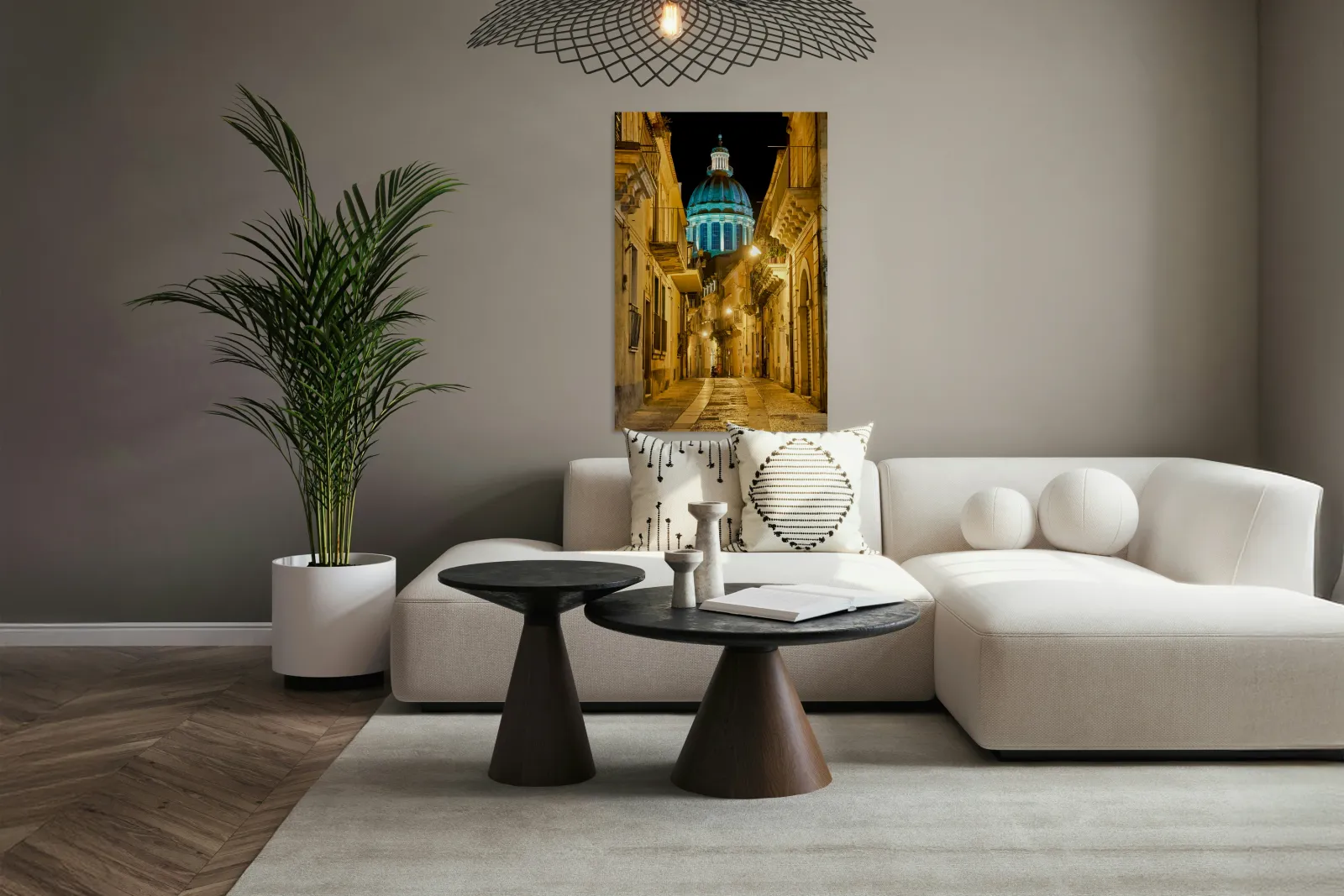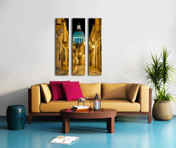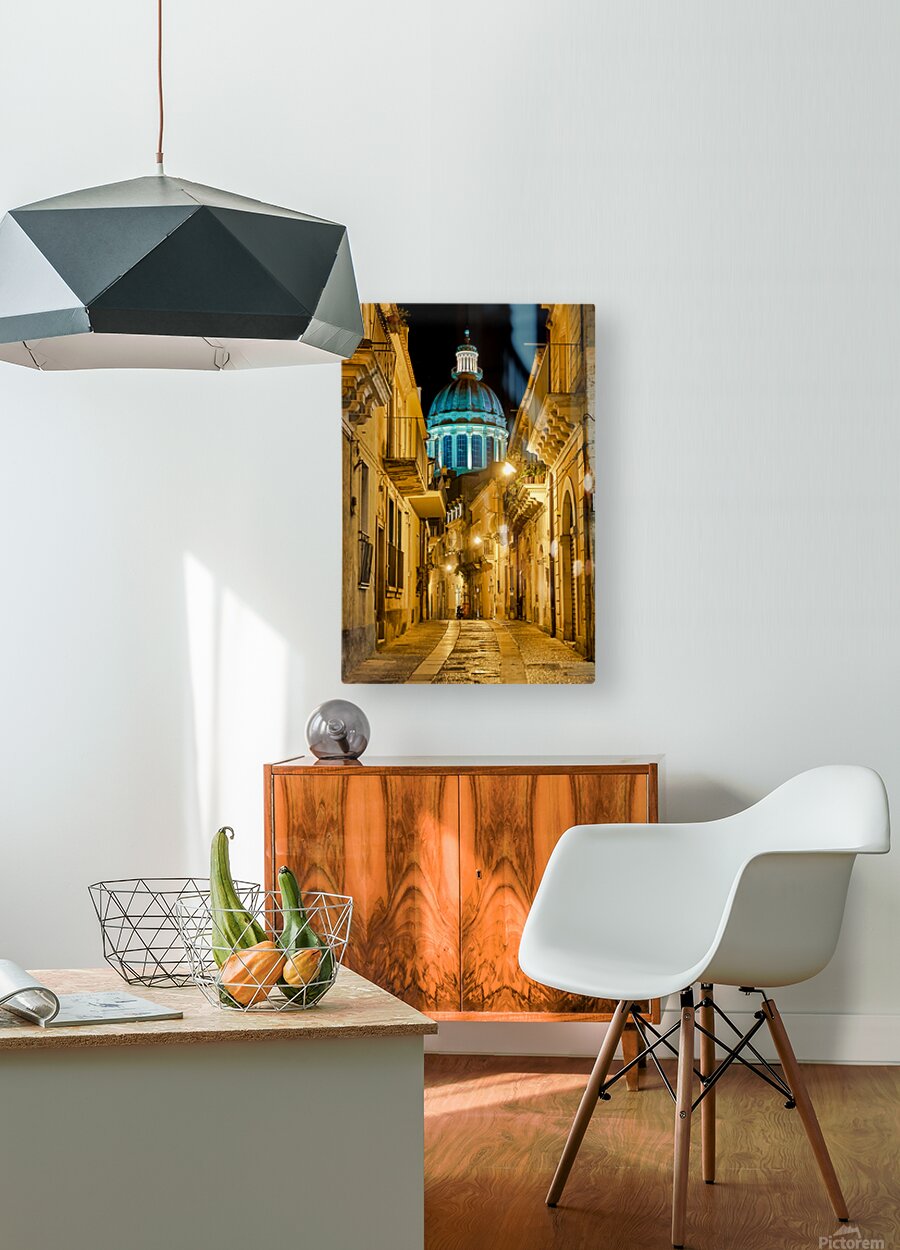"Duomo of San Giorgio shines at night in Modica Sicily Italy" in a framed print.