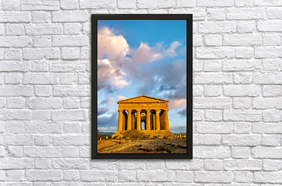 "Explore the Temple of Concordia located in Agrigento Sicily" in a framed print.