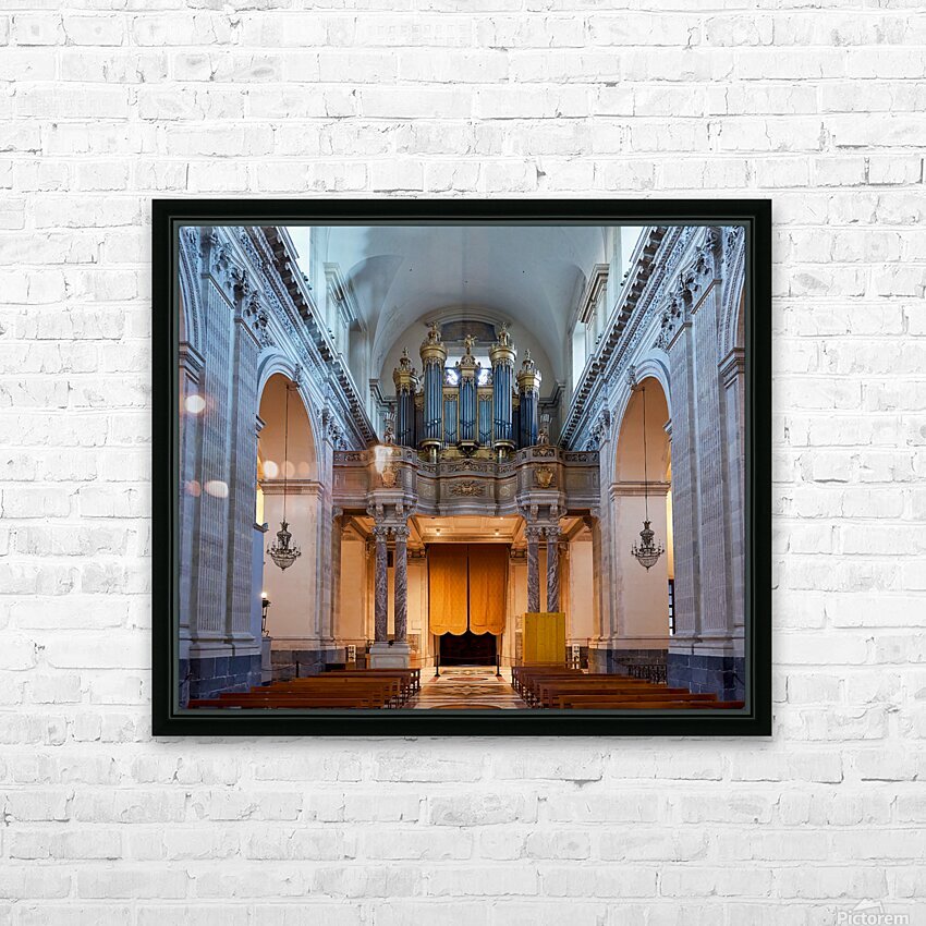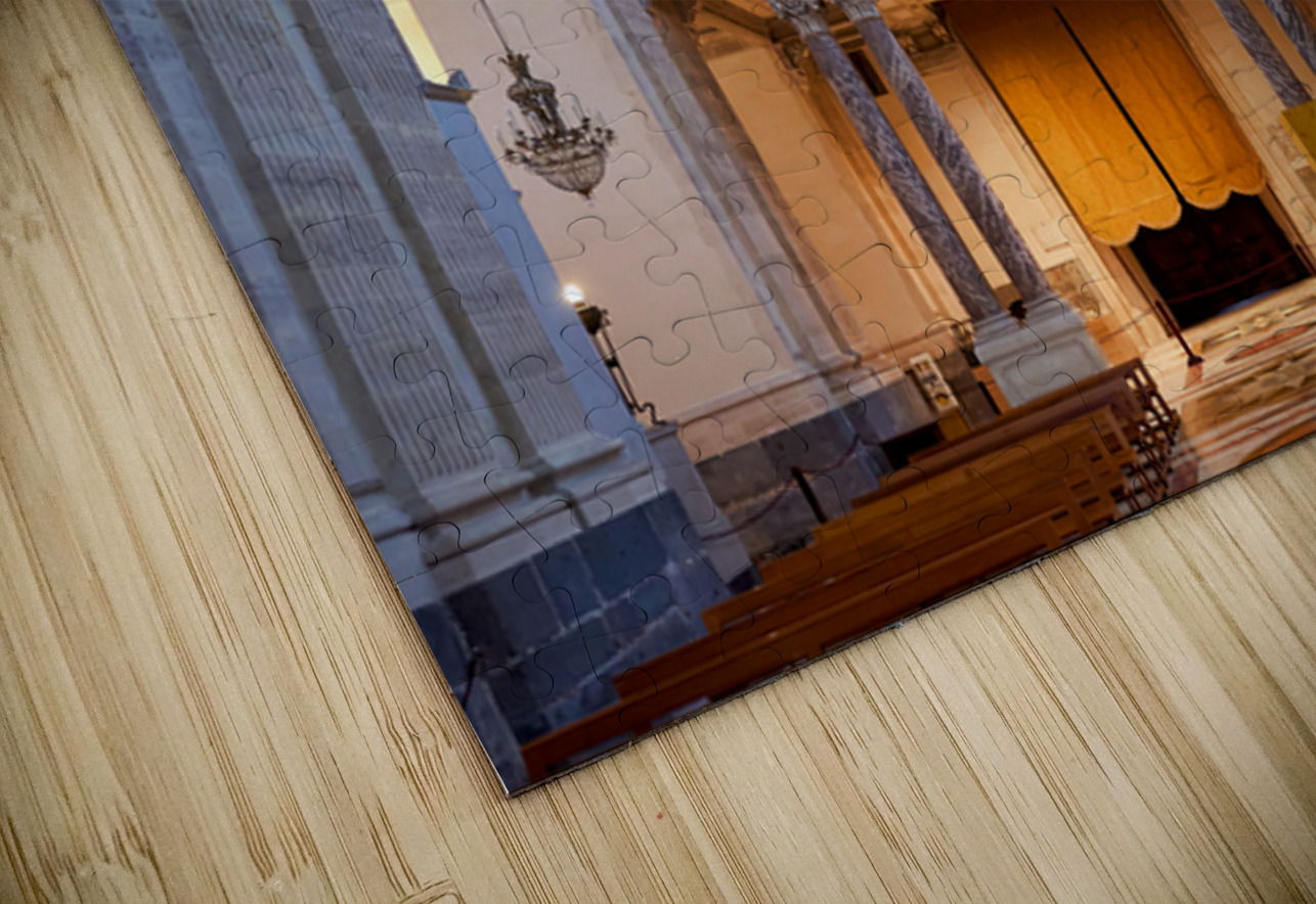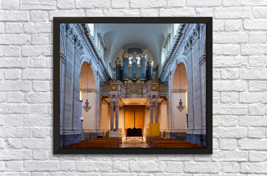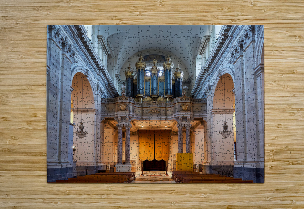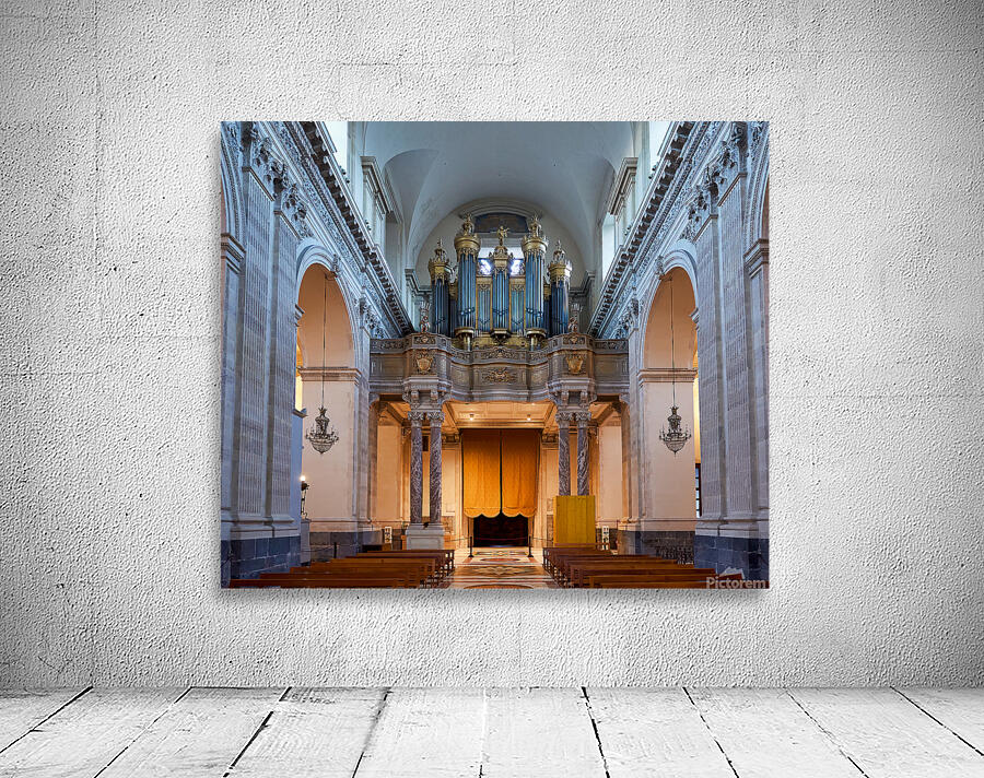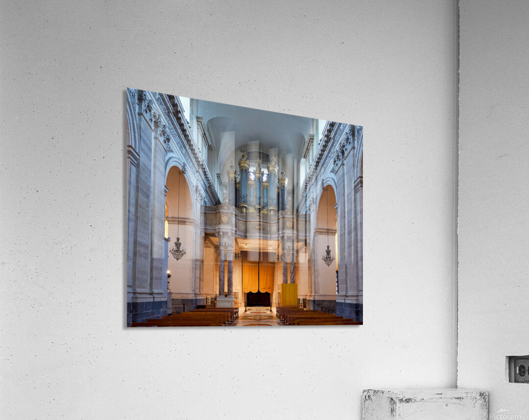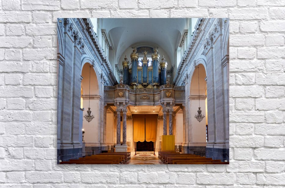 People explore the interior of the Metropolitan Cathedral of Saint Agatha in Catania Sicily observing the organ and architecture.
