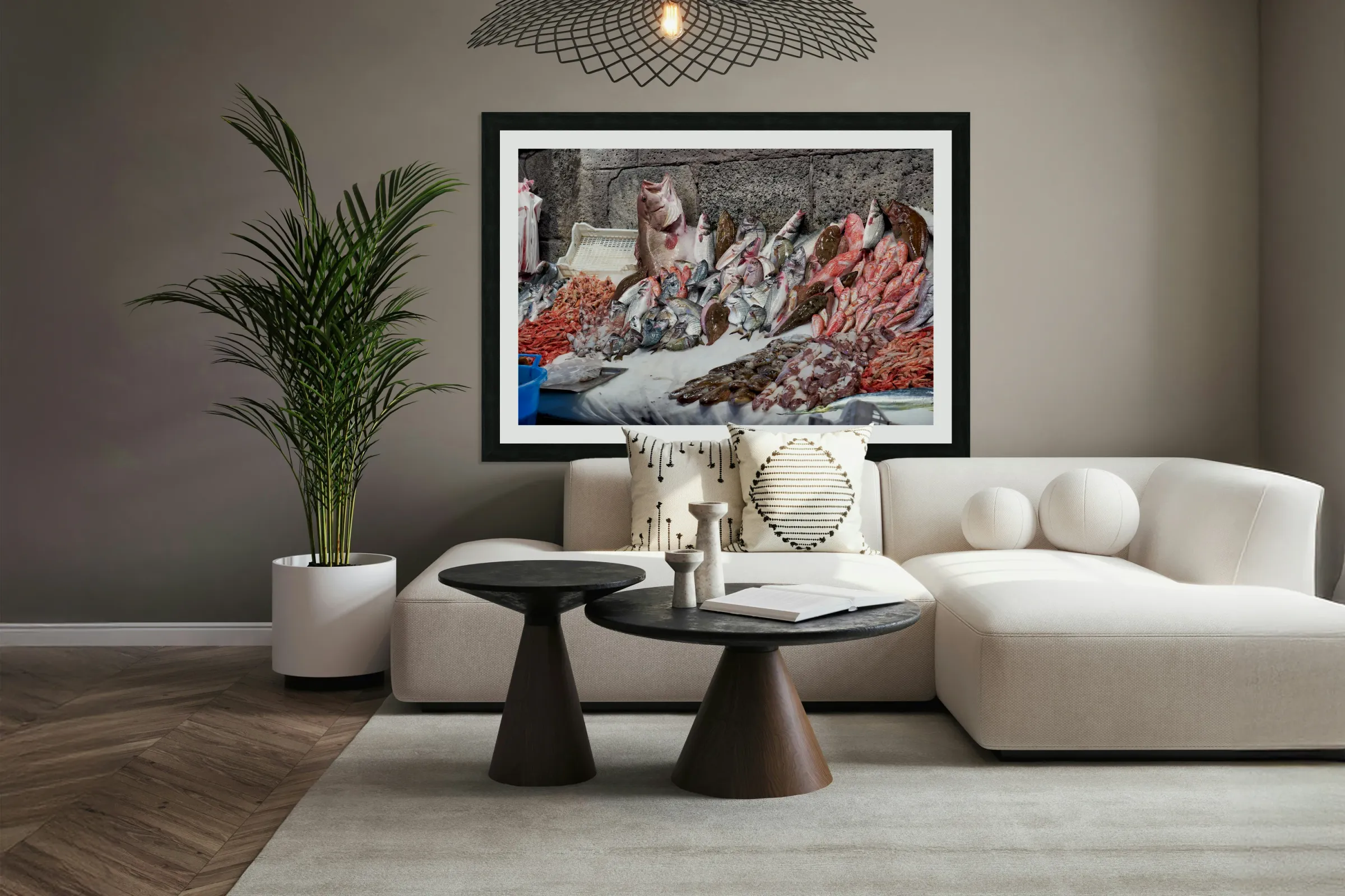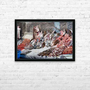 Get this artwork "Fresh seafood display at Piscaria market in Catania Sicily" in a framed print.