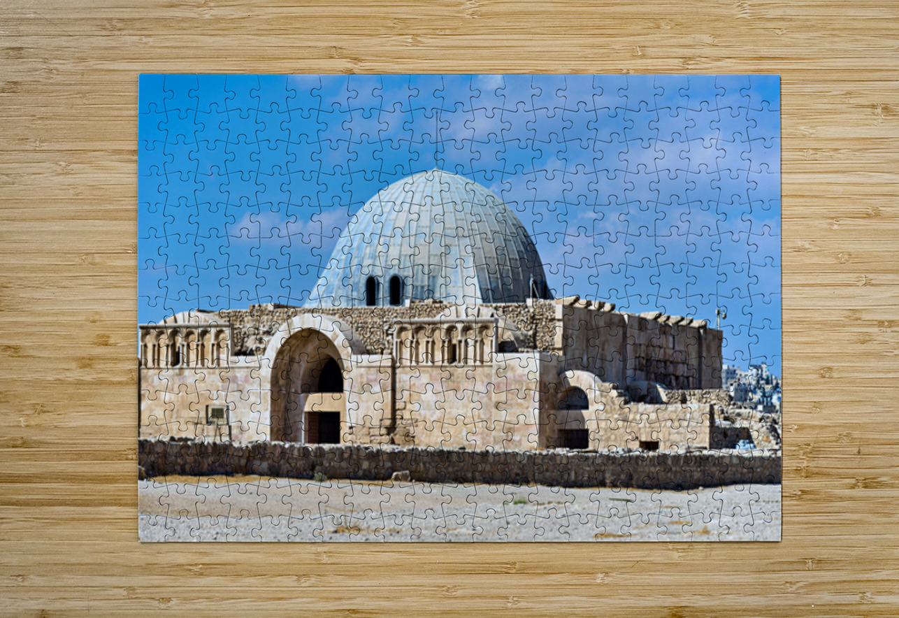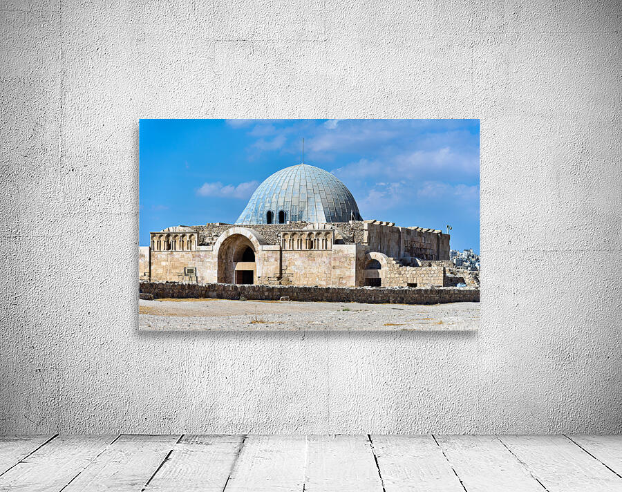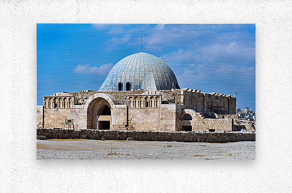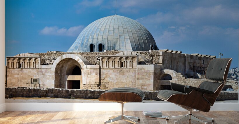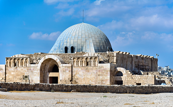 Tourists explore the Umayyad Cistern at the Citadel in Amman Jordan under a clear blue sky. The site shows ancient architecture.