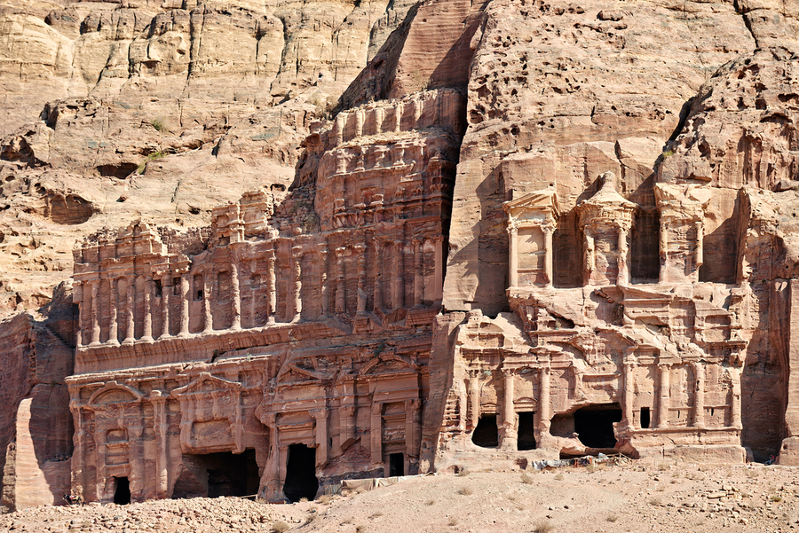 ROYAL TOMBS AT PETRA IN JORDAN SHOW ANCIENT ARCHITECTURE AND HIS