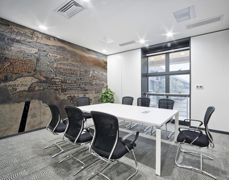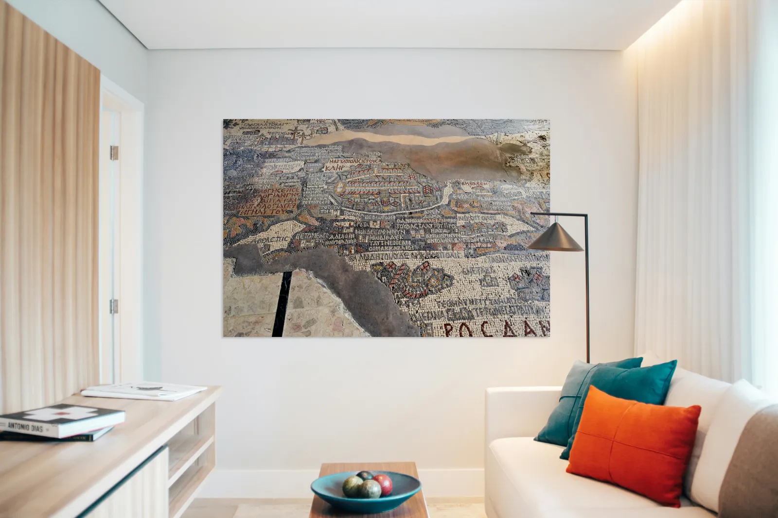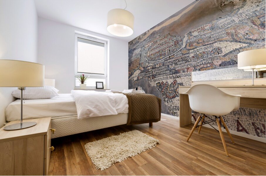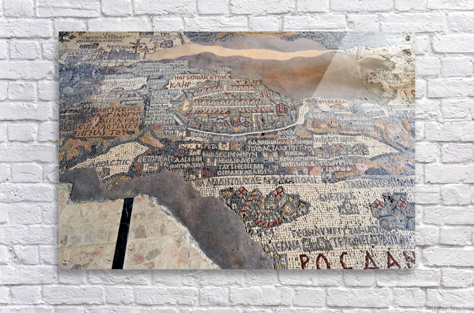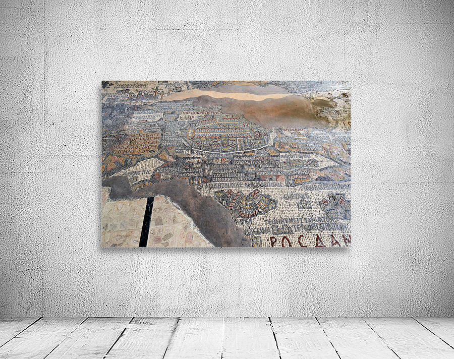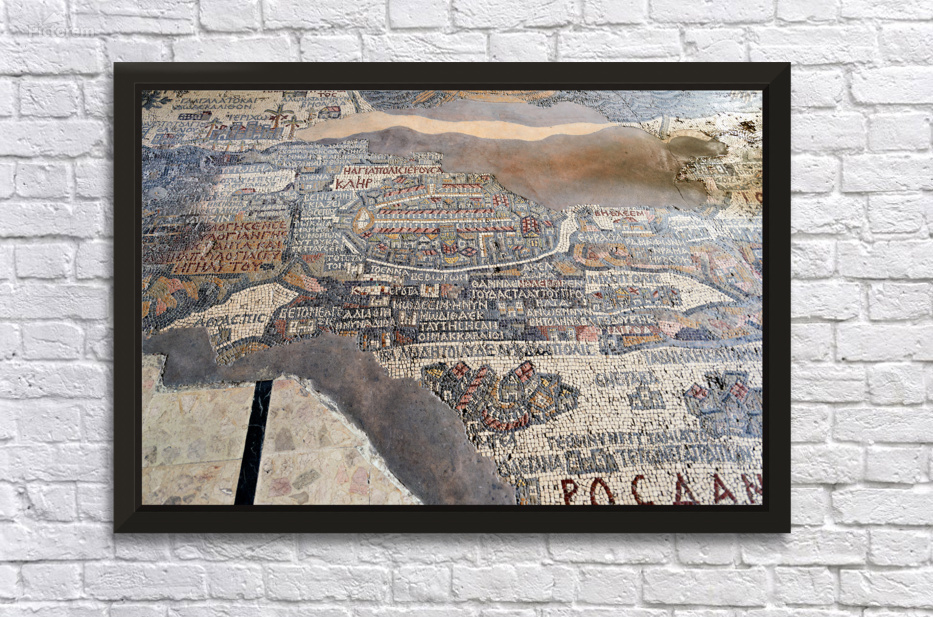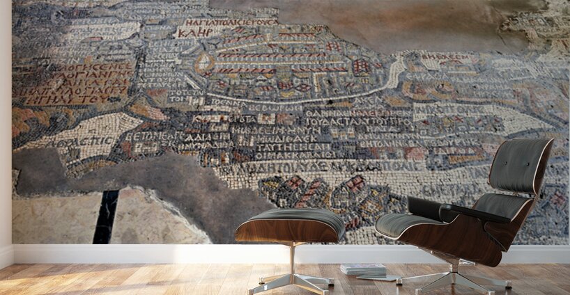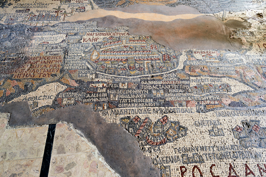 The Madaba Map shows ancient sites in a mosaic inside the Greek Orthodox Basilica of Saint George in Madaba Jordan.