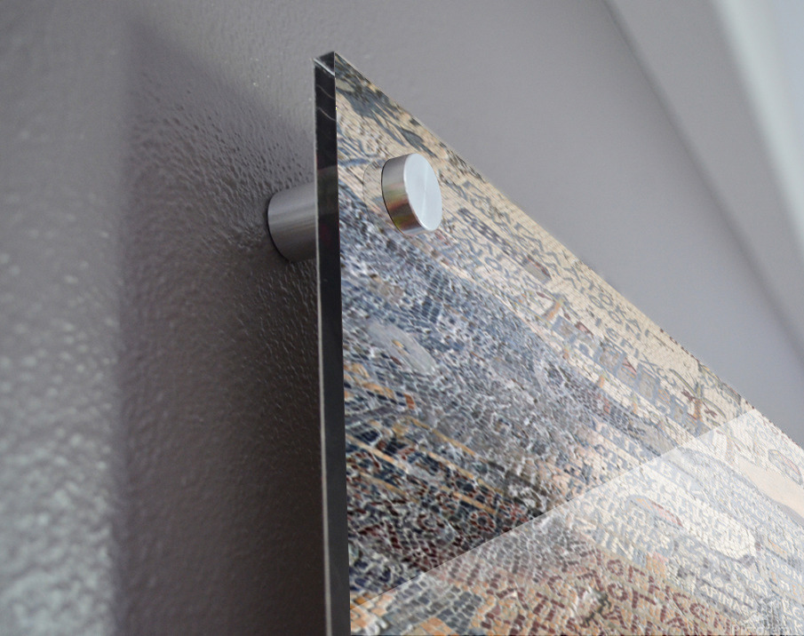 Printed to the edge - Ready to hang - provided with 4 premium polished aluminum stand off ( wall screws and mounting hardware provided )