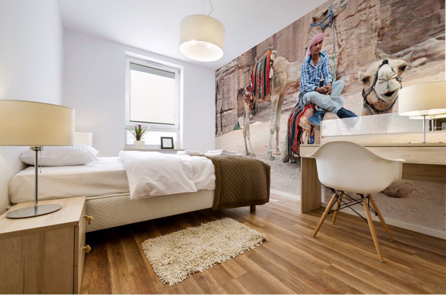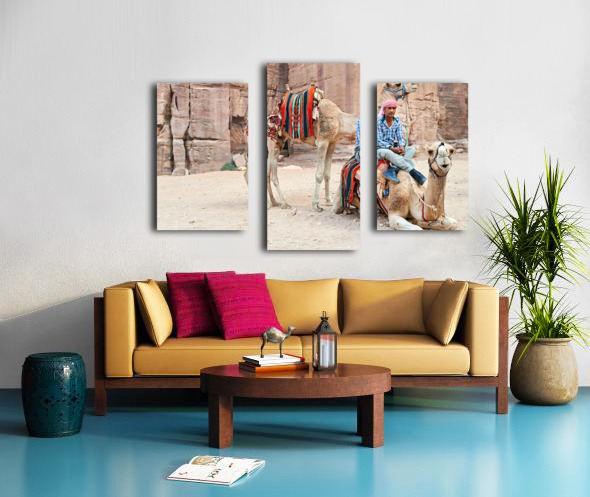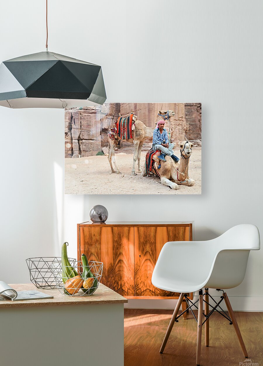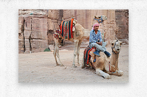 ABOUT THIS ARTWORK: CAMELS WAIT FOR TOURISTS AT PETRA ARCHAEOLOGICAL SITE IN JORDAN