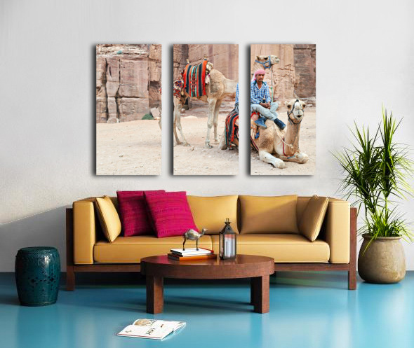 Get this artwork "Camels wait for tourists at Petra archaeological site in Jordan" in a framed print.