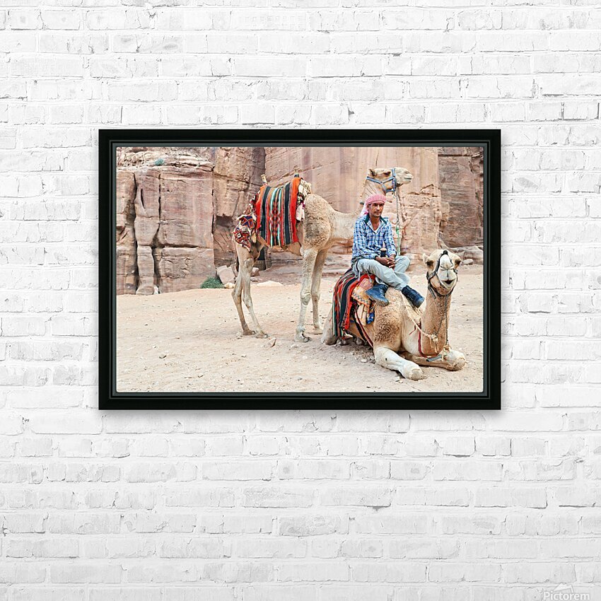 Camels wait for tourists at Petra archaeological site in Jordan Picture Frame Printing