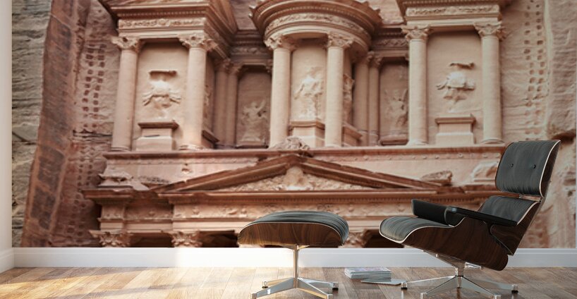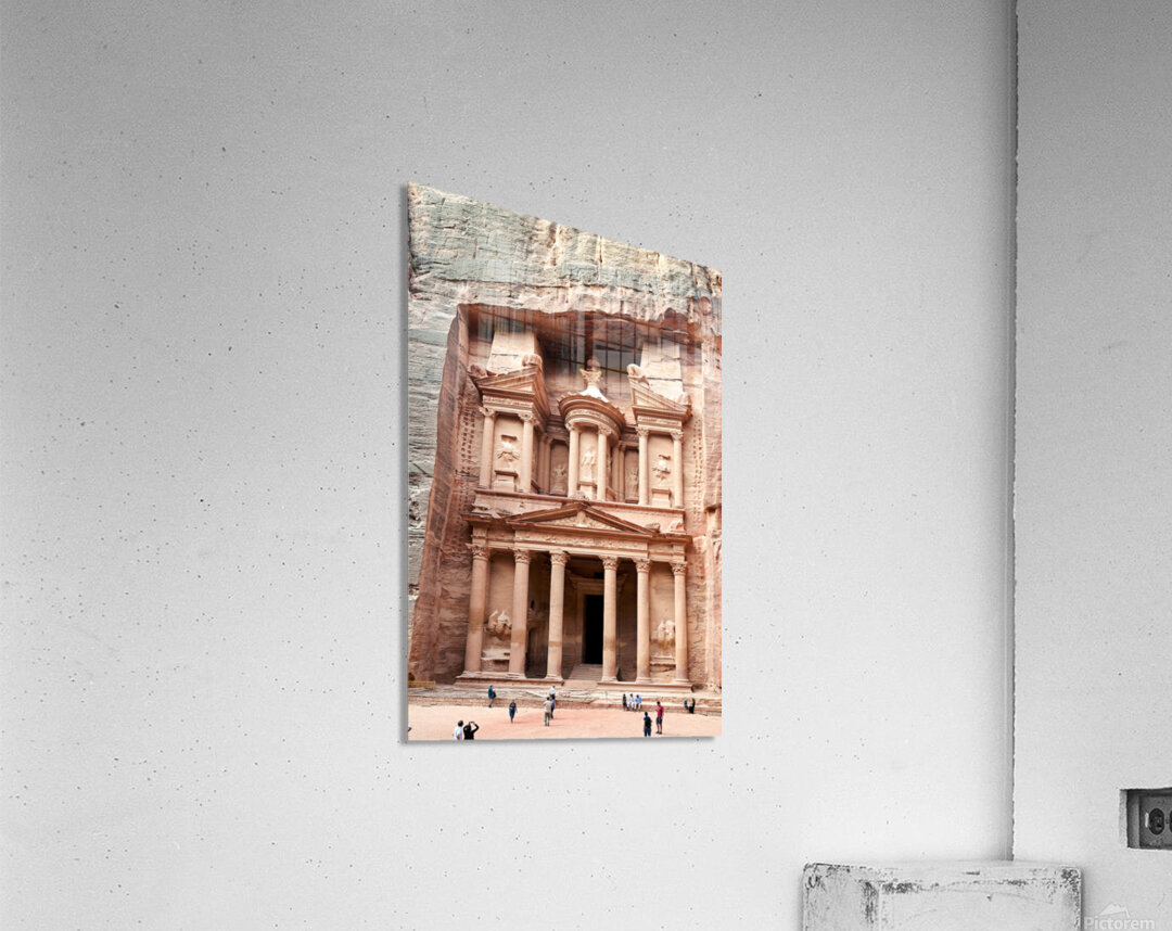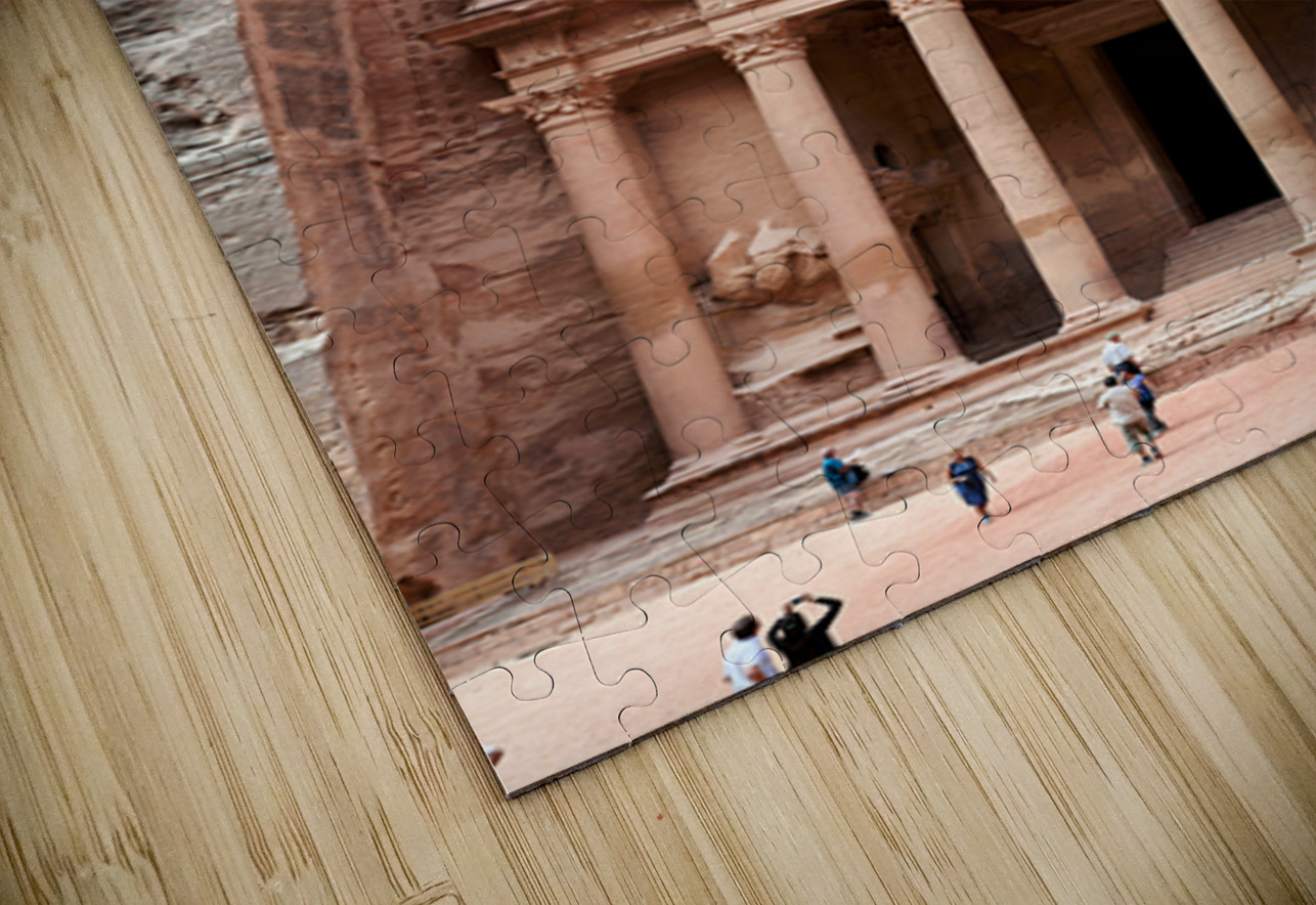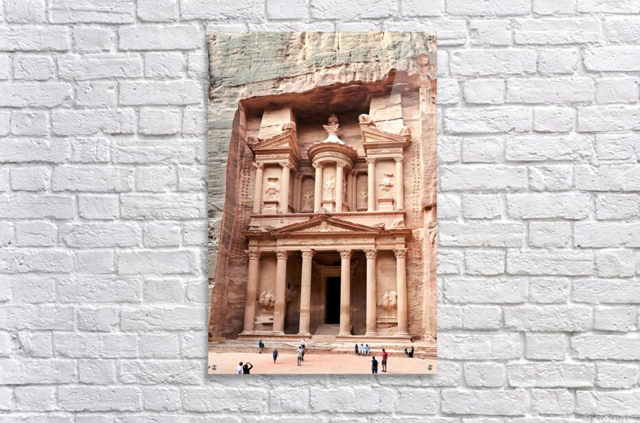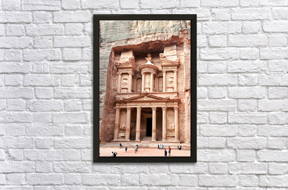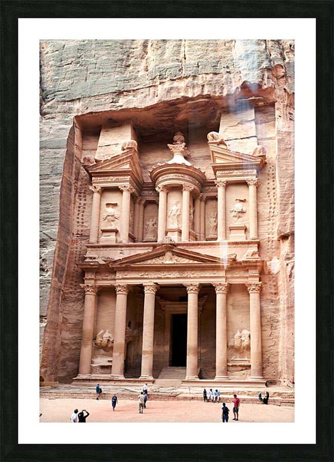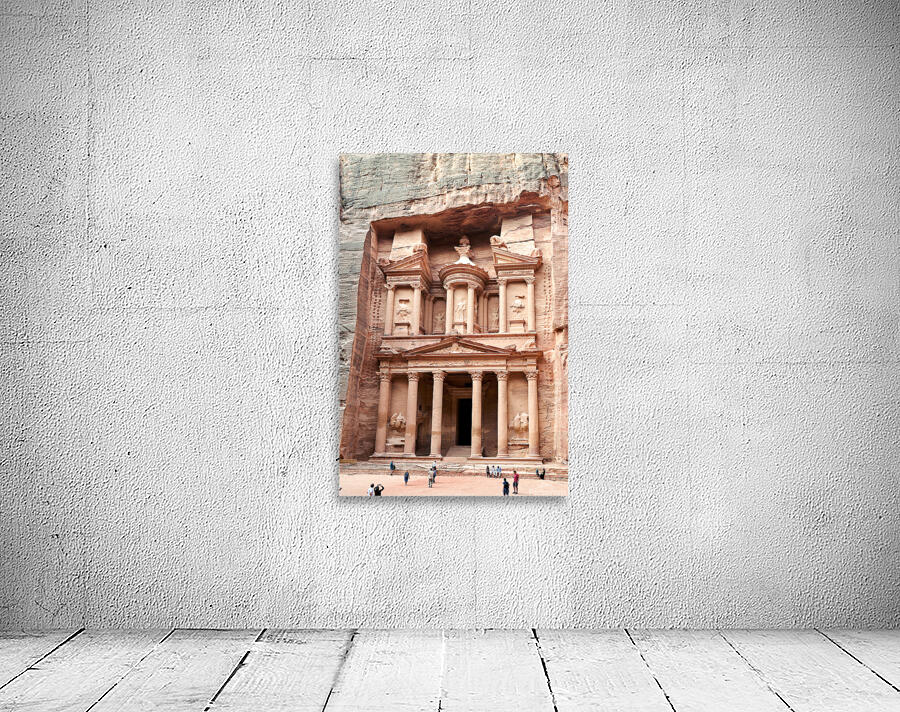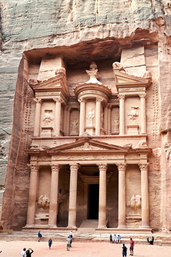 Visitors explore Al Khazneh the famous Treasury in Petra Jordan. The site showcases ancient architecture and rich history carved into rock.