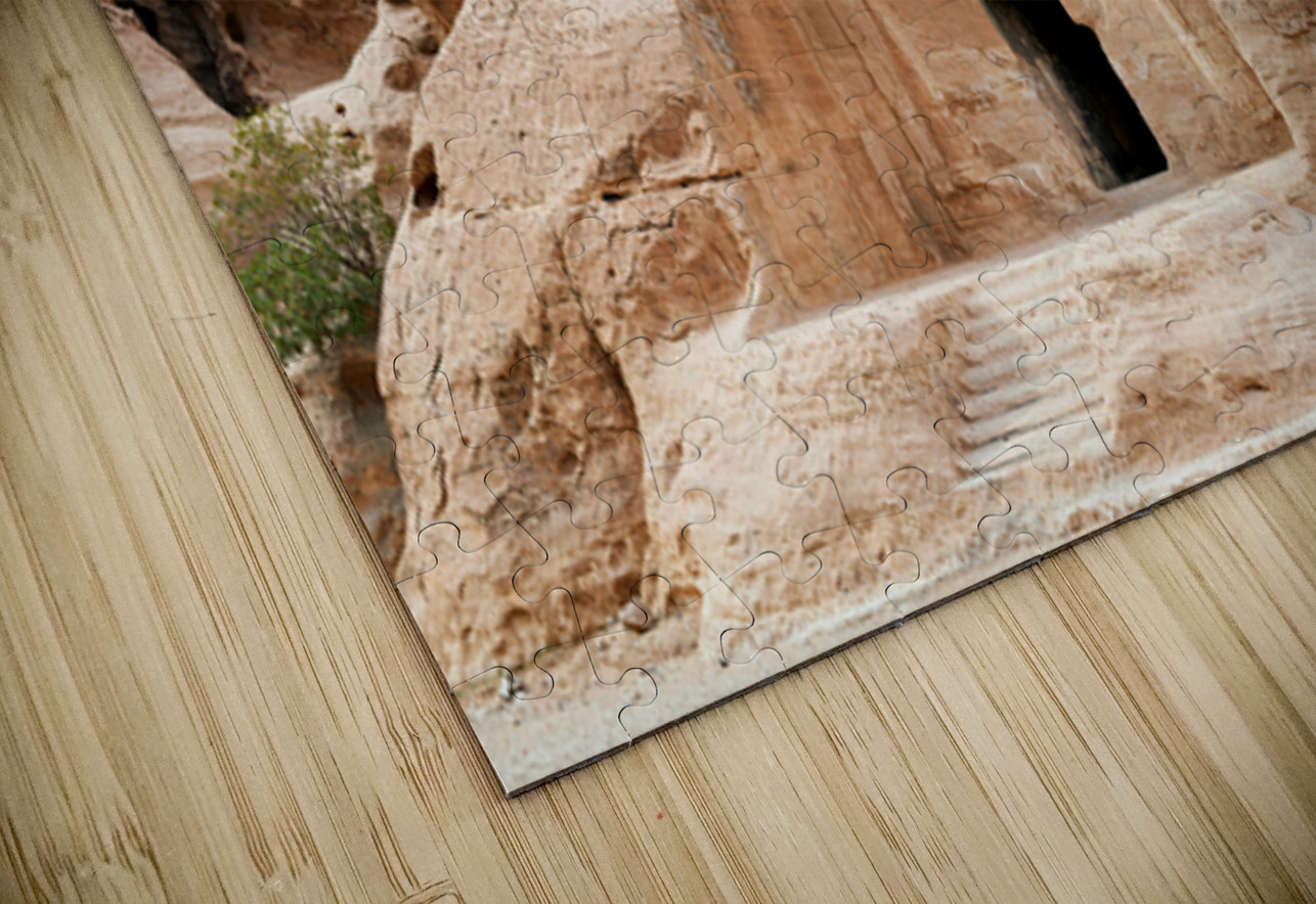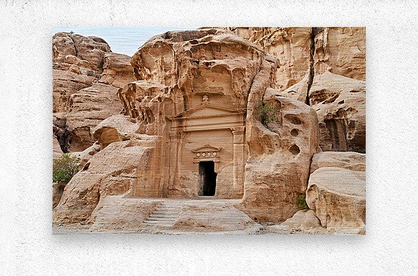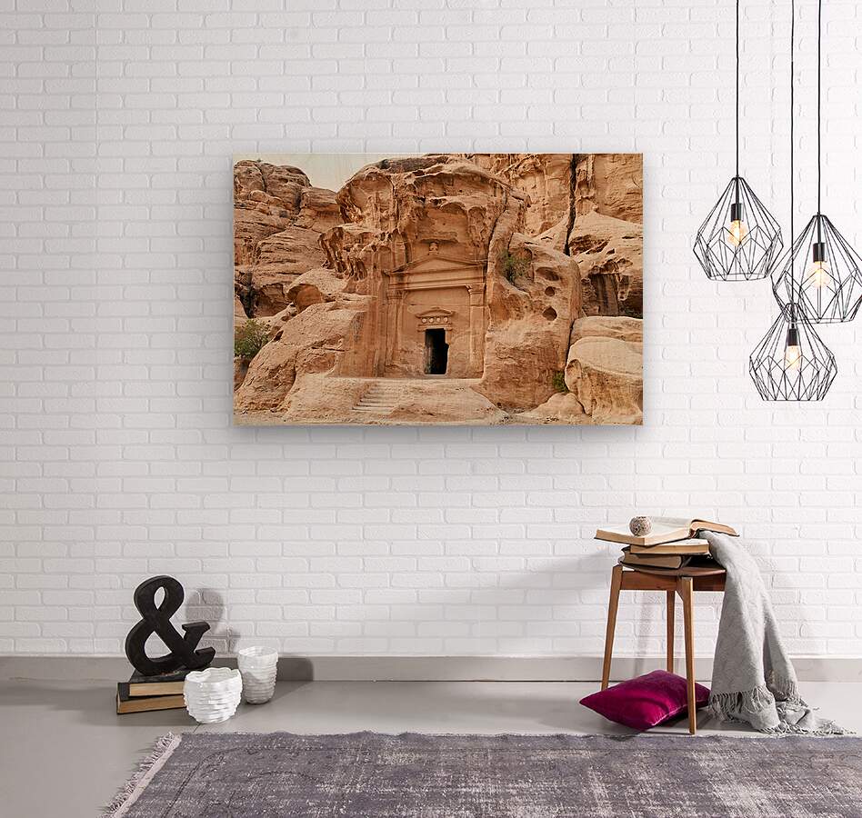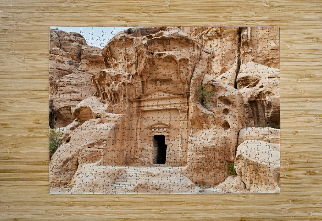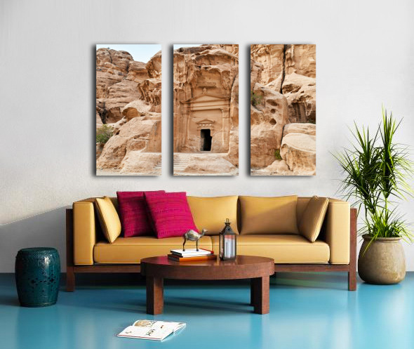 "Exploring Little Petra archaeological site in Wadi Musa Jordan" in a framed print.
