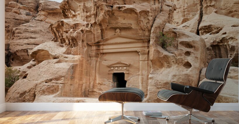 Visitors explore Little Petra in Wadi Musa Jordan. The site features rock-cut architecture and ancient structures carved into stone.