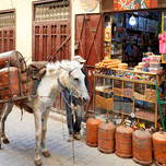 DONKEY CARRYING GAS CYLINDERS THROUGH FEZ MEDINA STREETS