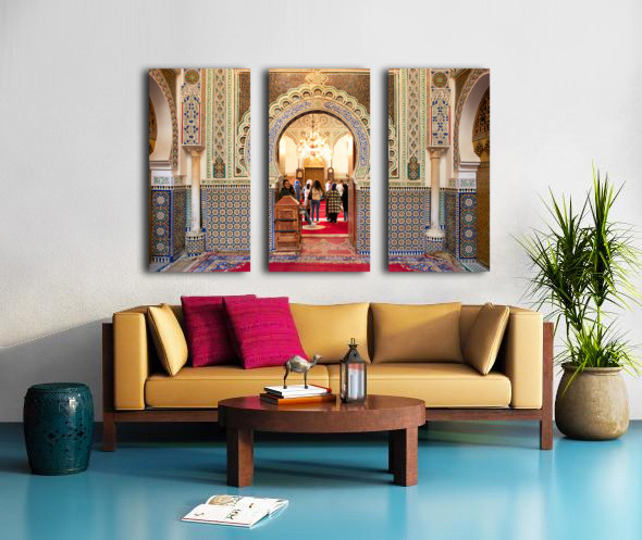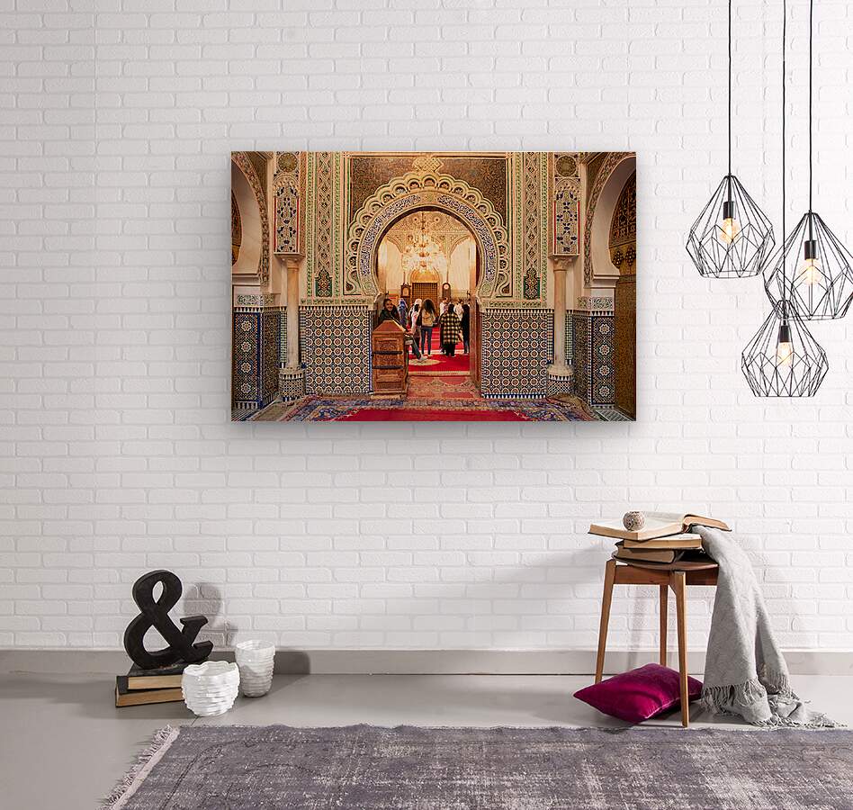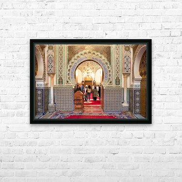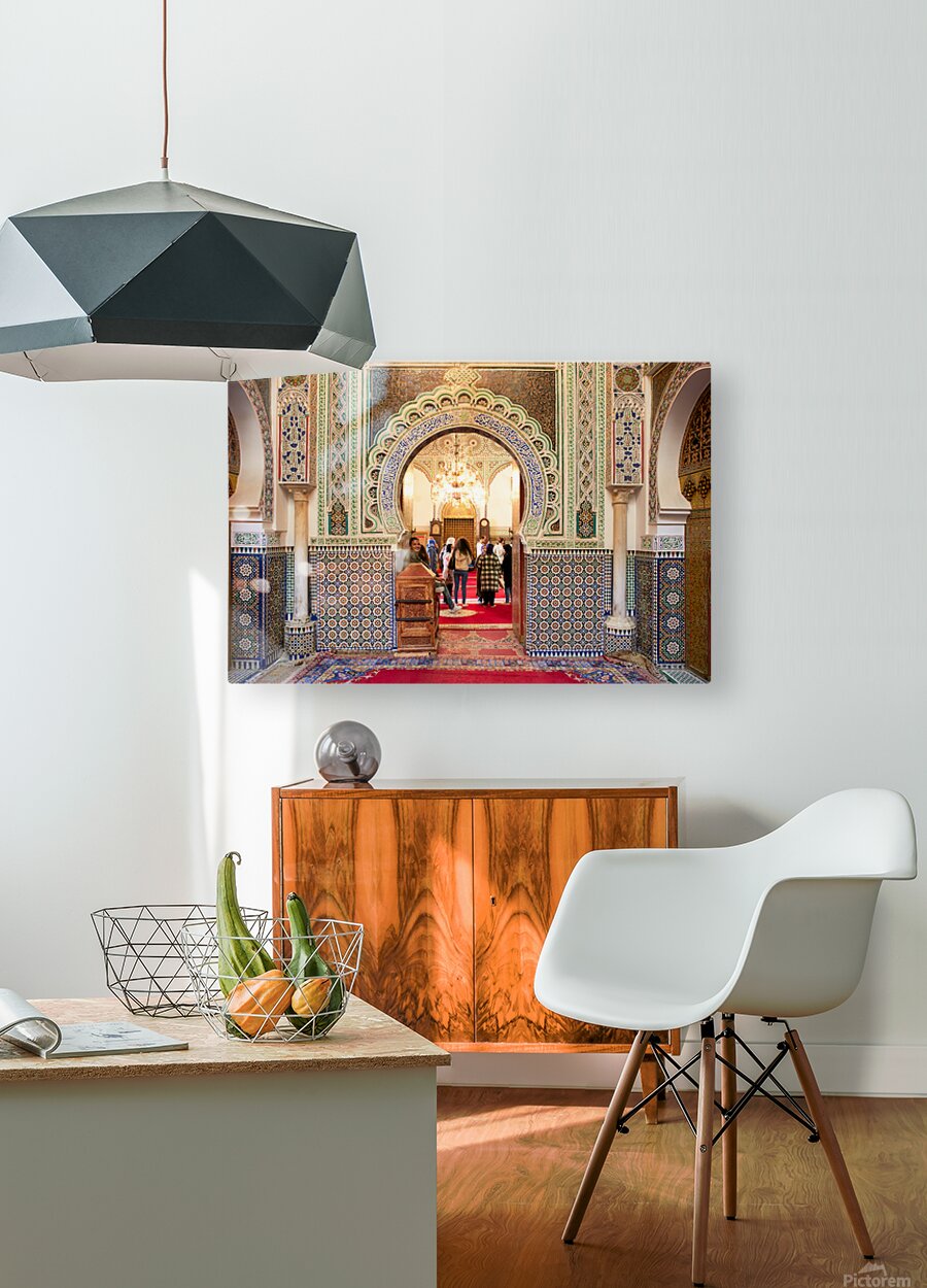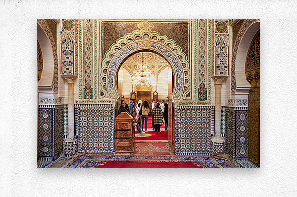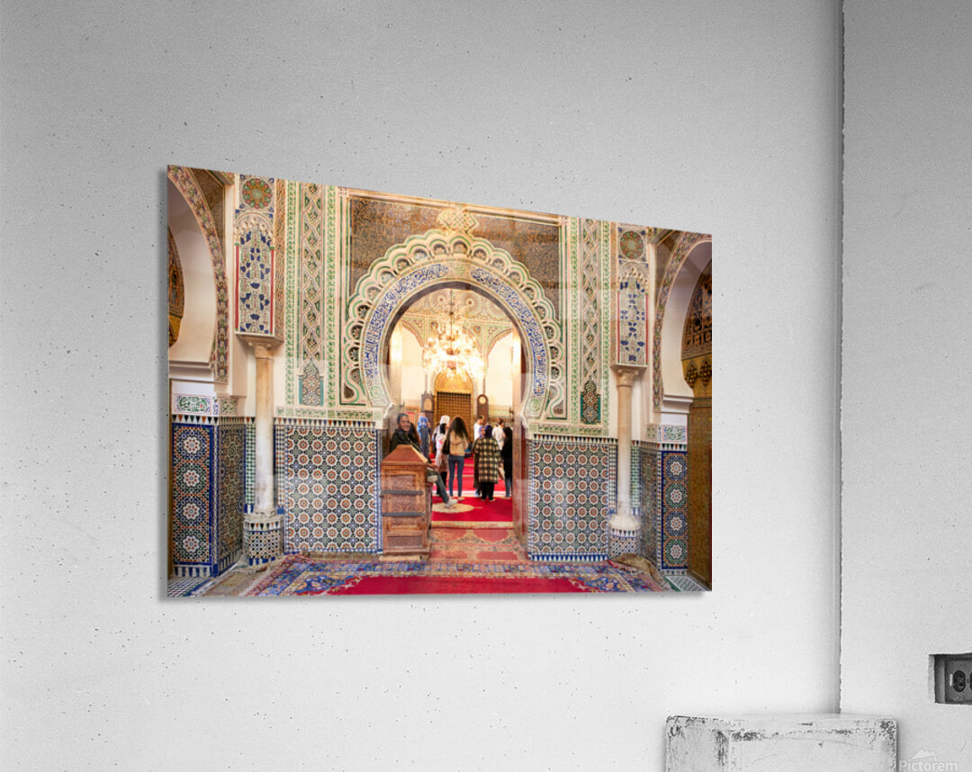 "Exploring Almawla Zaouia Moulay Idriss II mosque in Fez Morocco" in a framed print.