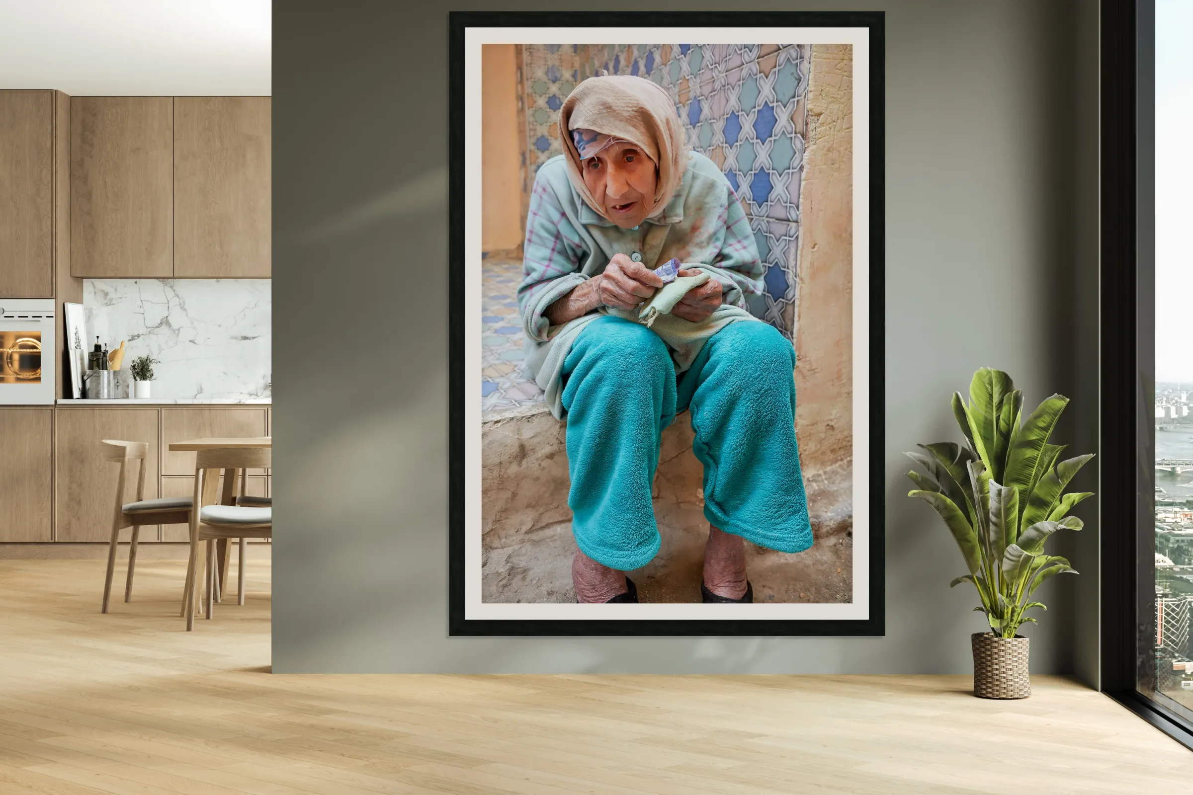 Get this artwork "Beggar sitting in Fez Morocco with worn clothes and hands" in a framed print.
