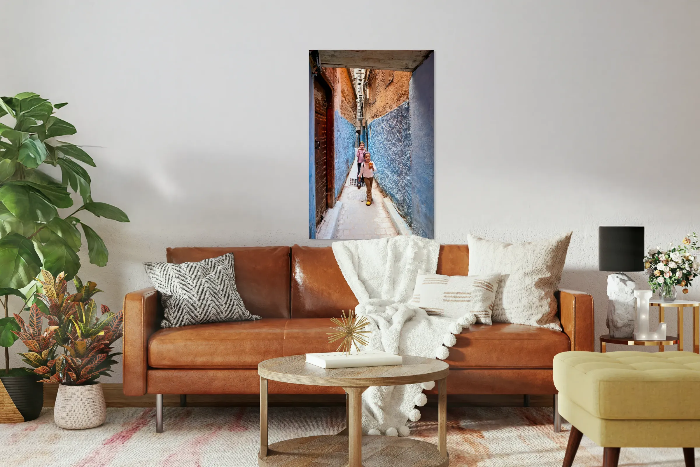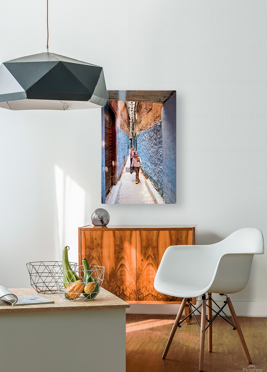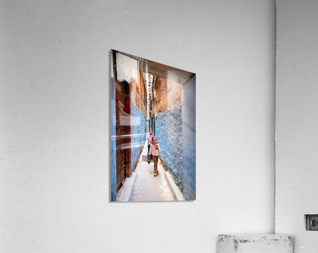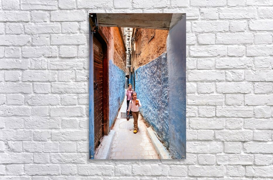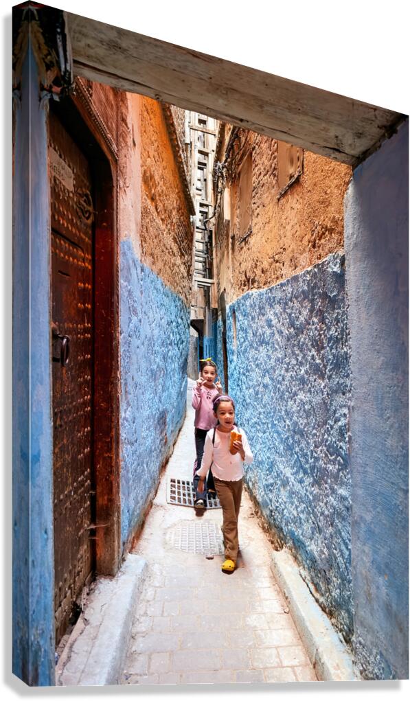 Get this artwork "Children play in the alleys of the Medina in Fez Morocco" in a framed print.