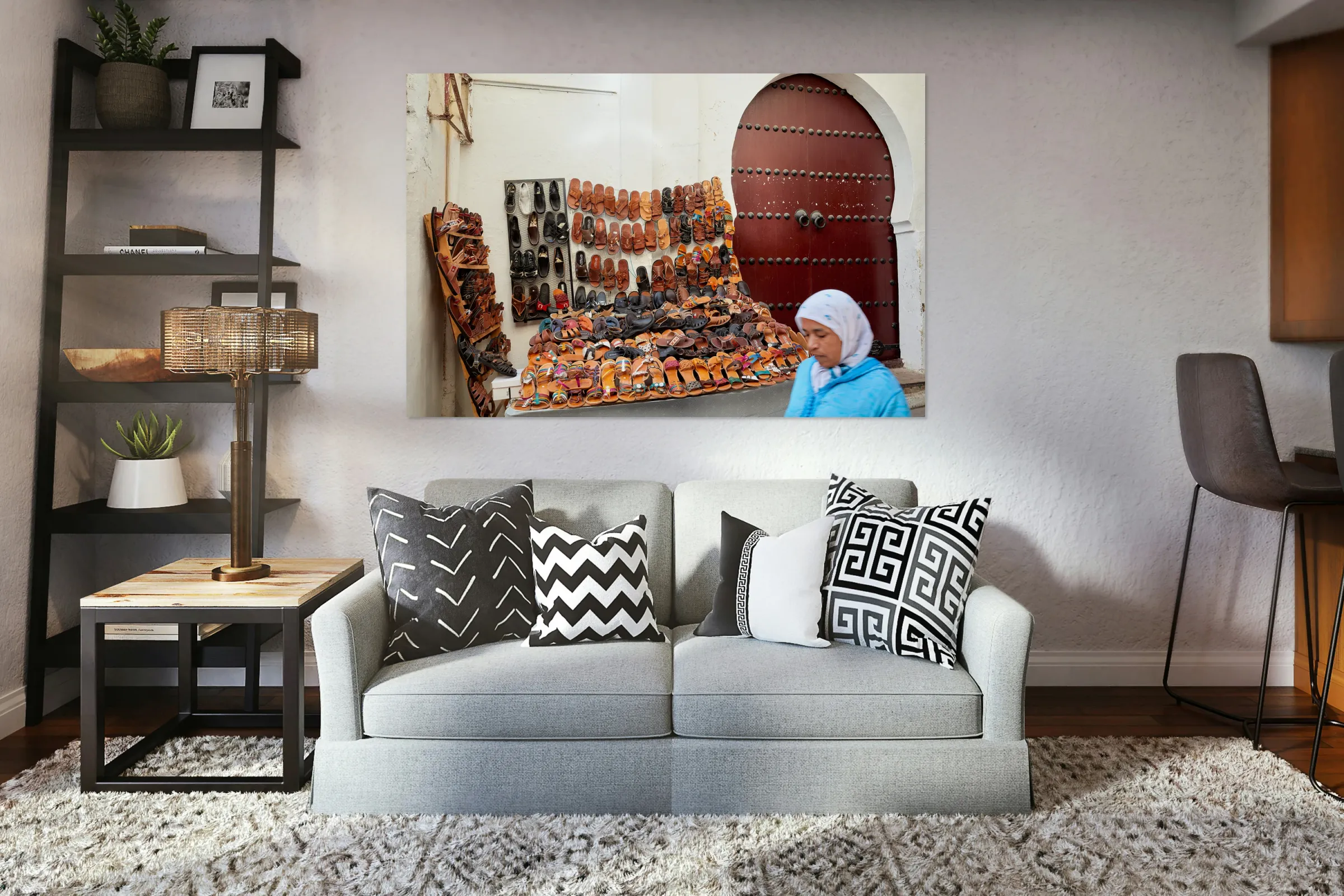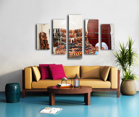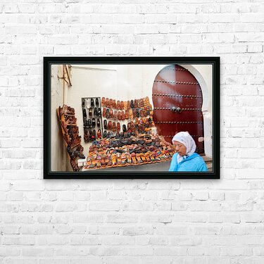 Moroccan slippers for sale in the Medina of Fez Frame print