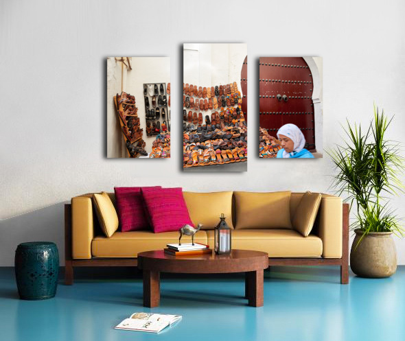 Get this artwork "Moroccan slippers for sale in the Medina of Fez" in a framed print.