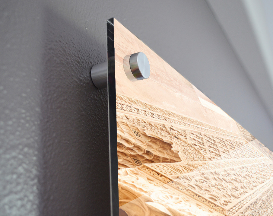 Printed to the edge - Ready to hang - provided with 4 premium polished aluminum stand off ( wall screws and mounting hardware provided )