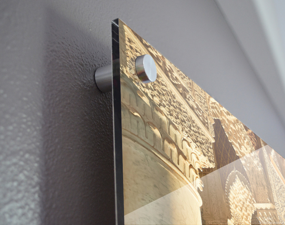 Printed to the edge - Ready to hang - provided with 4 premium polished aluminum stand off ( wall screws and mounting hardware provided )