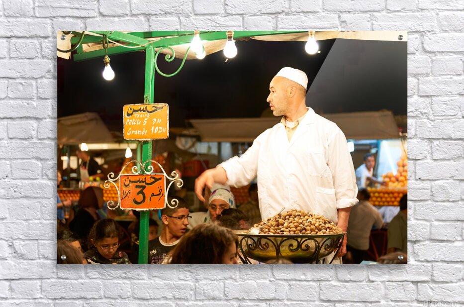 ABOUT THIS ARTWORK: SNAIL DINNER SERVED AT STREET VENDORS IN MARRAKECH NIGHT MARKET