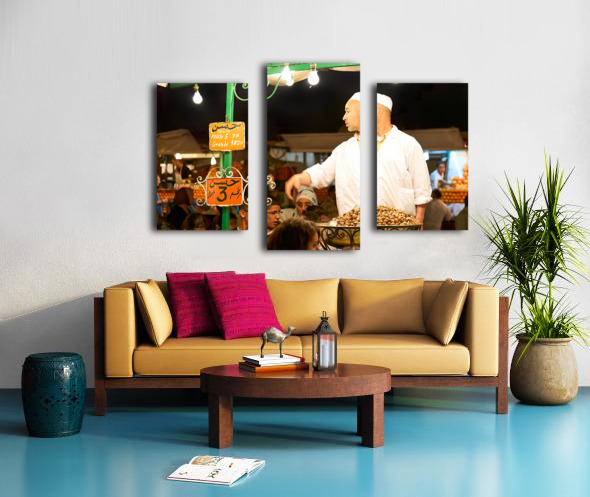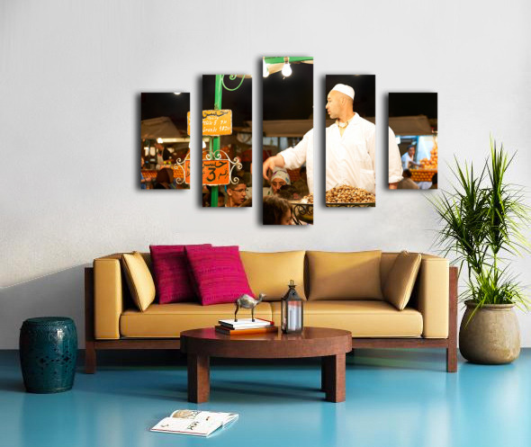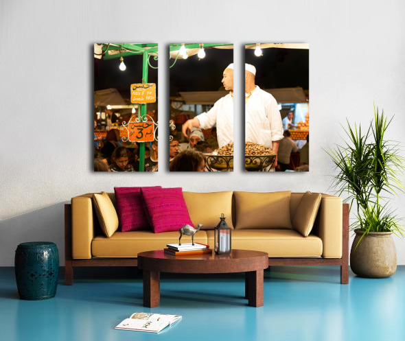 Get this artwork "Snail dinner served at street vendors in Marrakech night market" in a framed print.