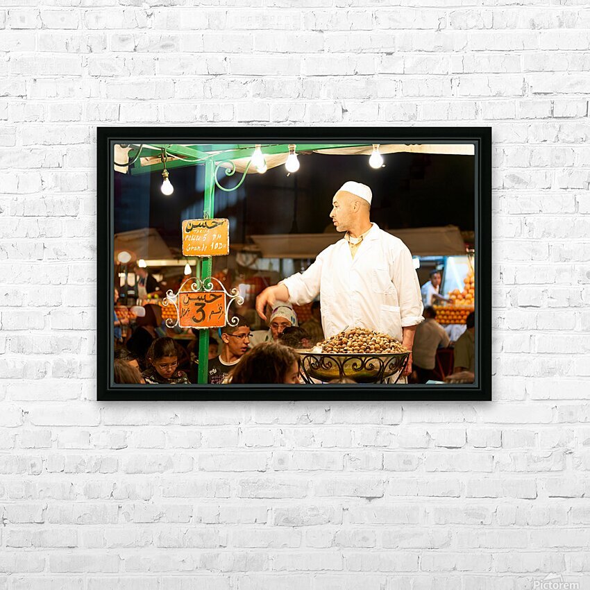 Snail dinner served at street vendors in Marrakech night market Picture Frame Printing