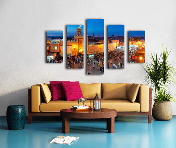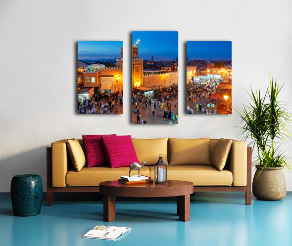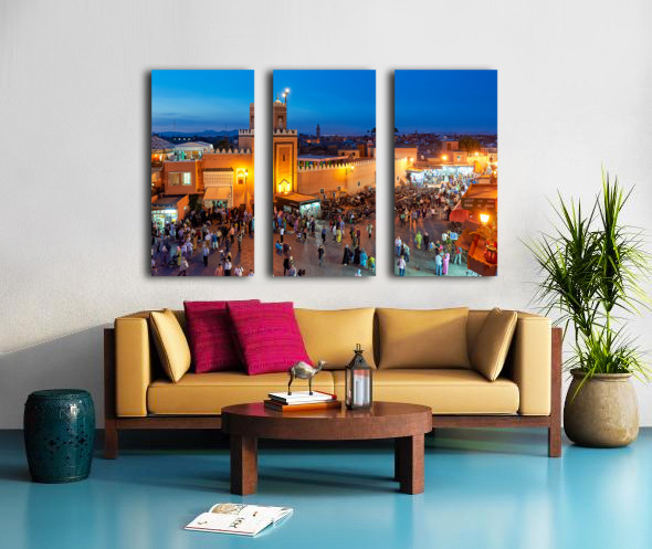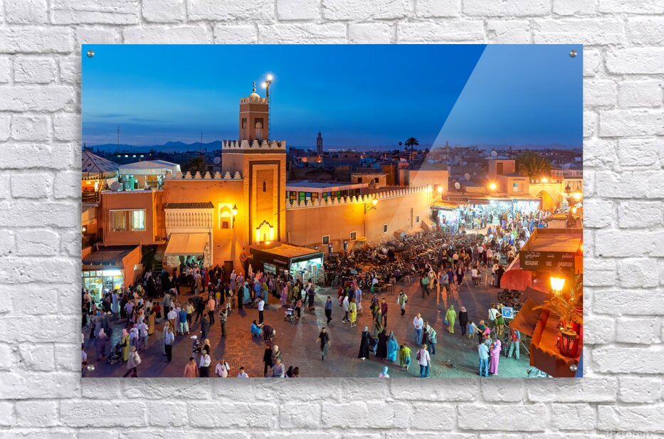 Get this artwork "Sunset at Djema el Fna square in Marrakesh Morocco" in a framed print.