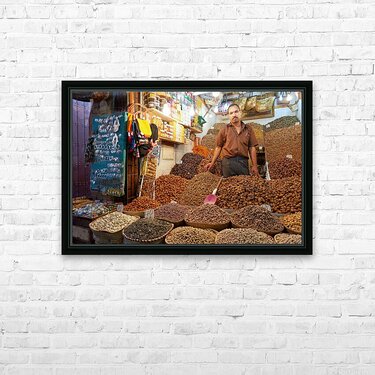 Get this artwork "Dried fruit sale in souk of Marrakesh Morocco during daytime" in a framed print.