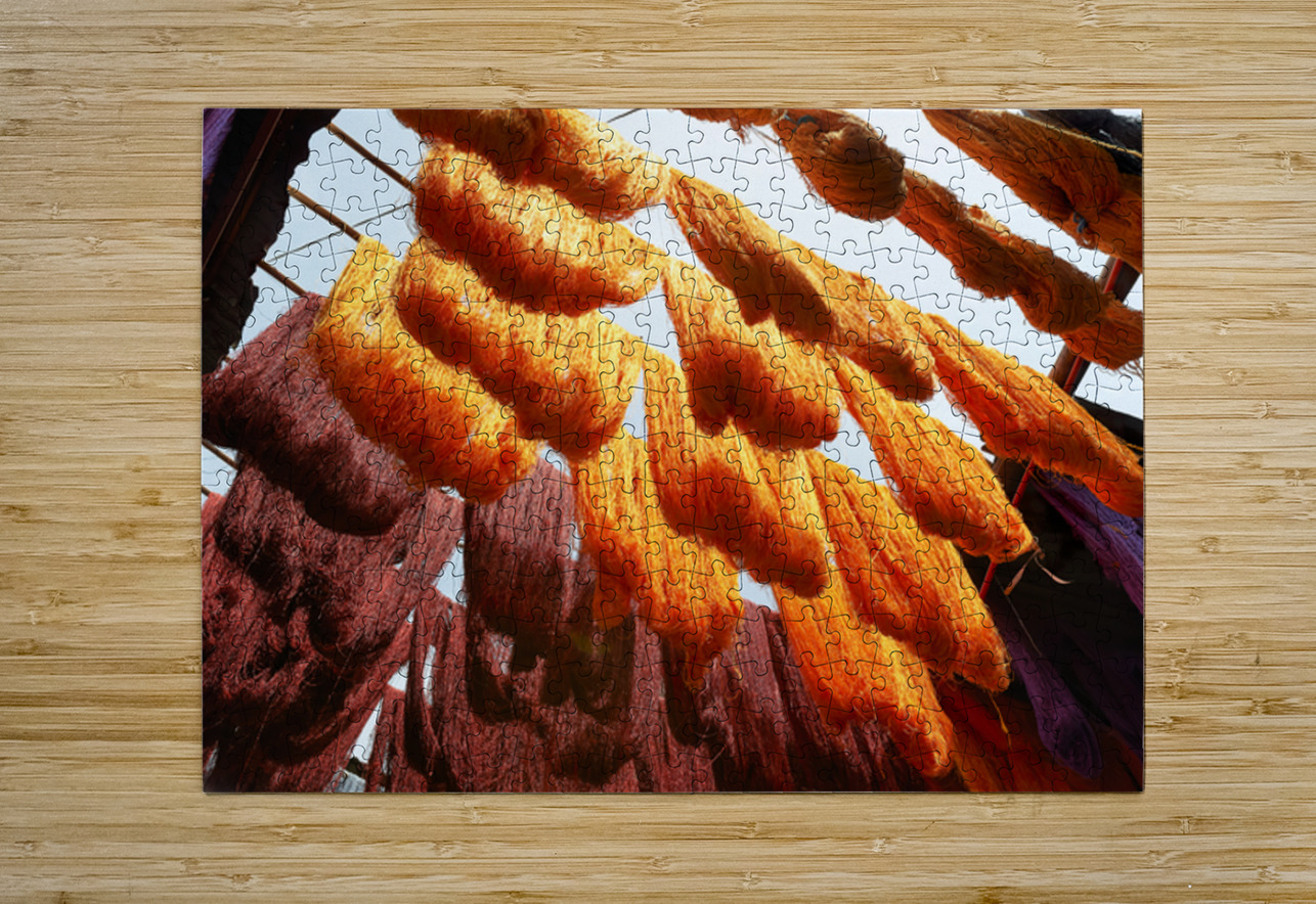 Colorful threads hanging in the dyers souk of Marrakesh Morocco Marco Brivio Puzzle printing