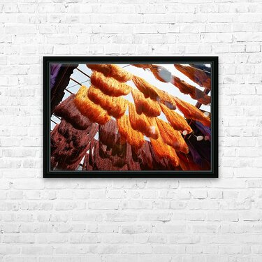 Colorful threads hanging in the dyers souk of Marrakesh Morocco Picture Frame Printing