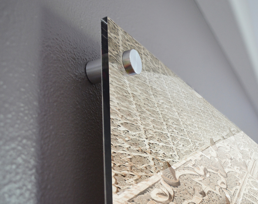 Printed to the edge - Ready to hang - provided with 4 premium polished aluminum stand off ( wall screws and mounting hardware provided )