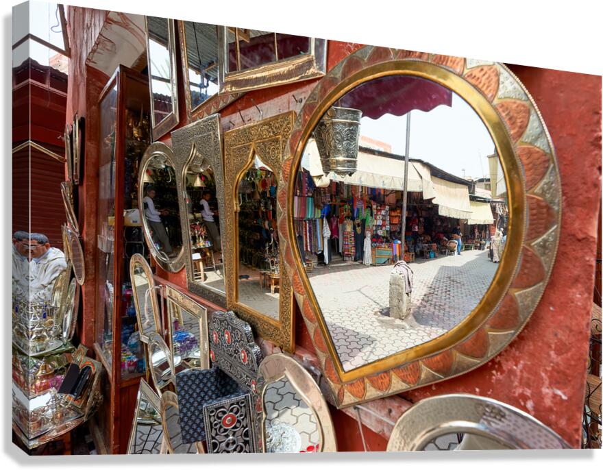 Get this artwork "Life in the souk of Marrakesh showing local shops and items" in a framed print.