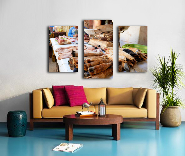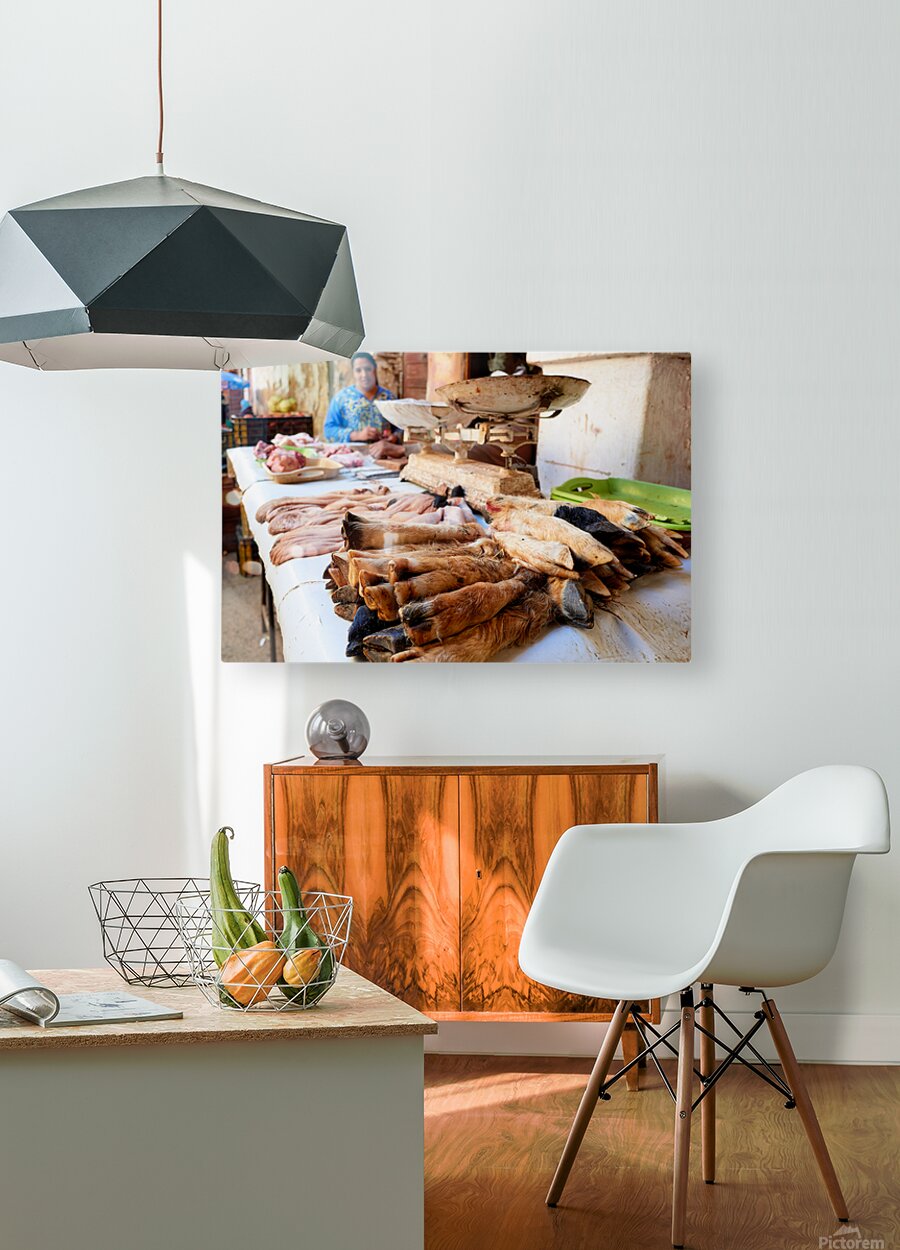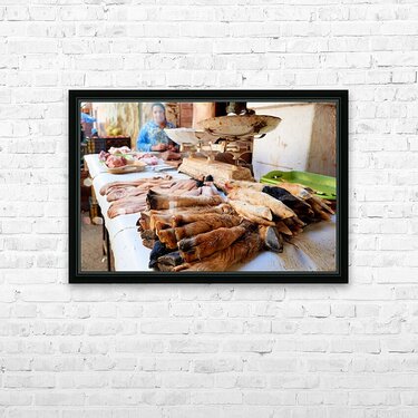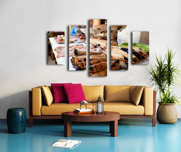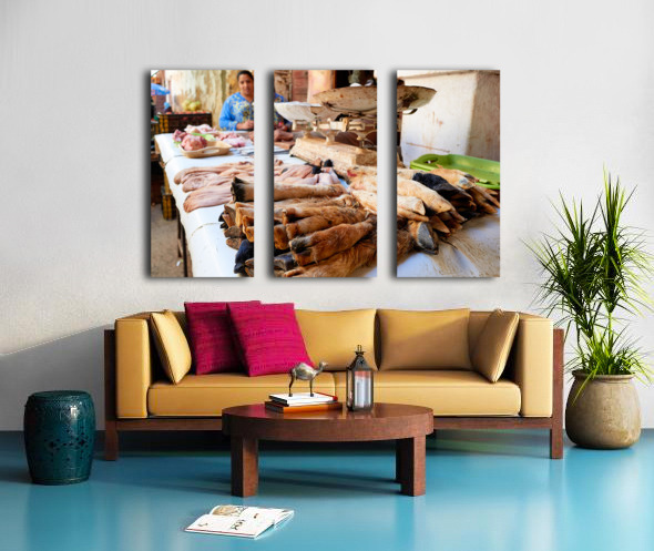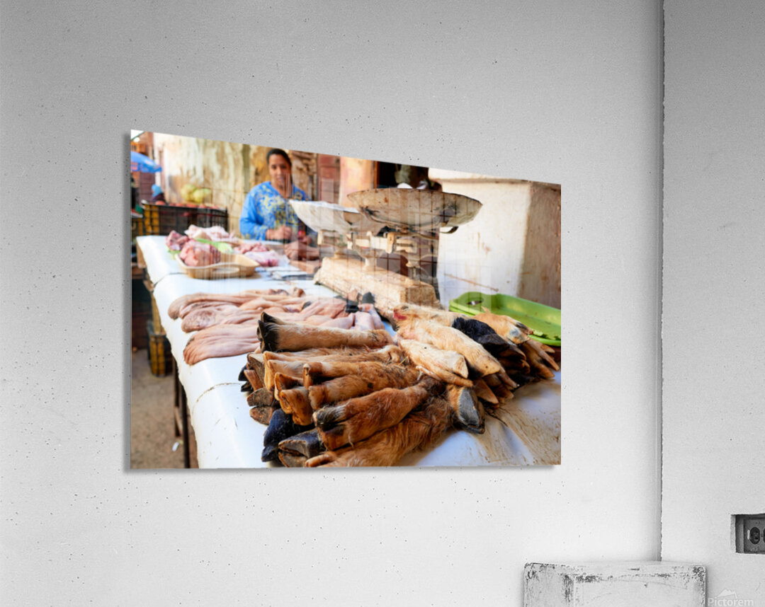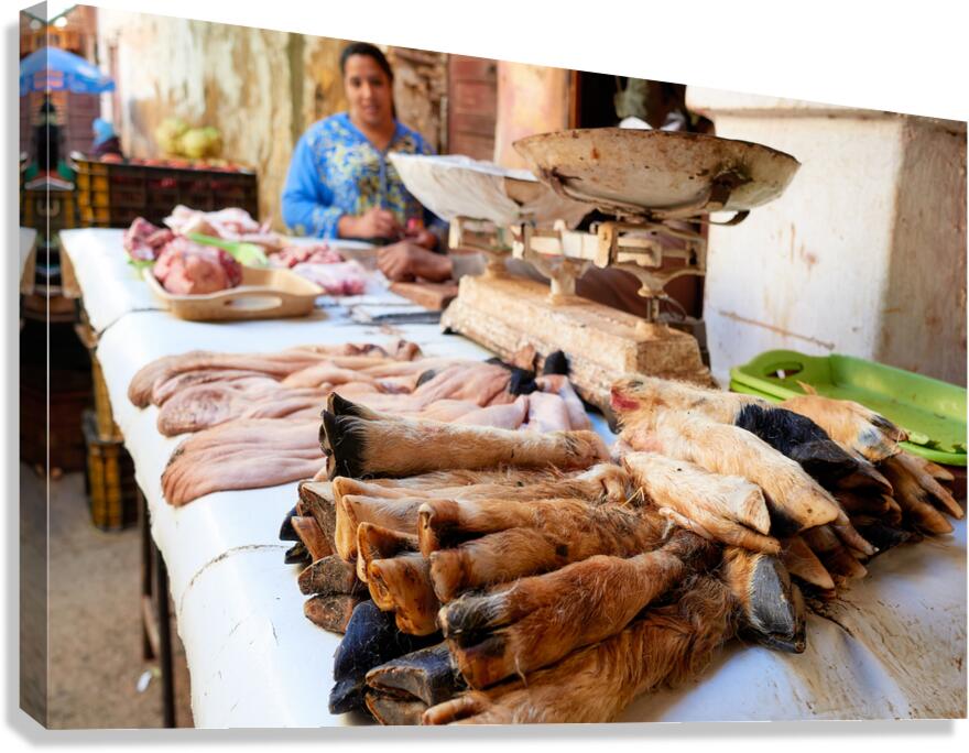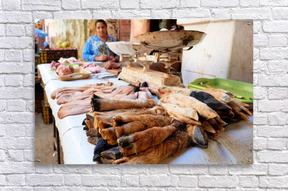Get this artwork "Butcher working in Meknes souk with various cuts of meat" in a framed print.