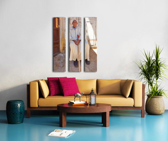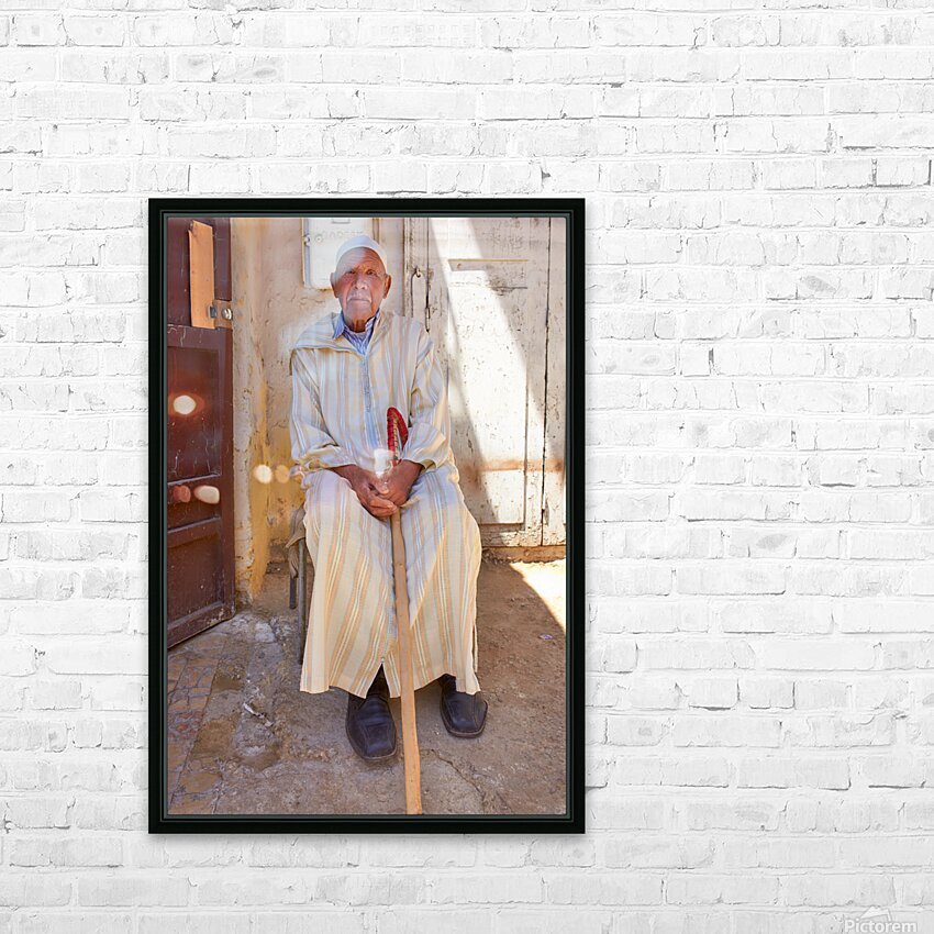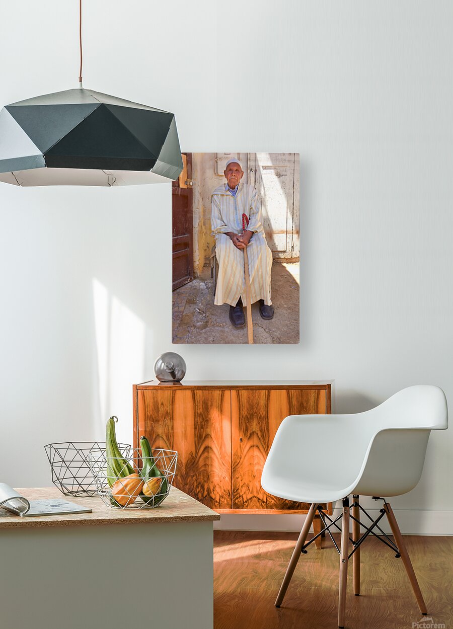 Get this artwork "Old man sitting in Meknes Morocco in daylight" in a framed print.