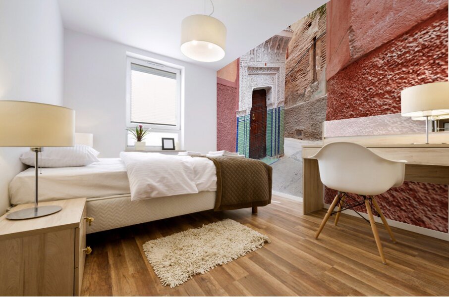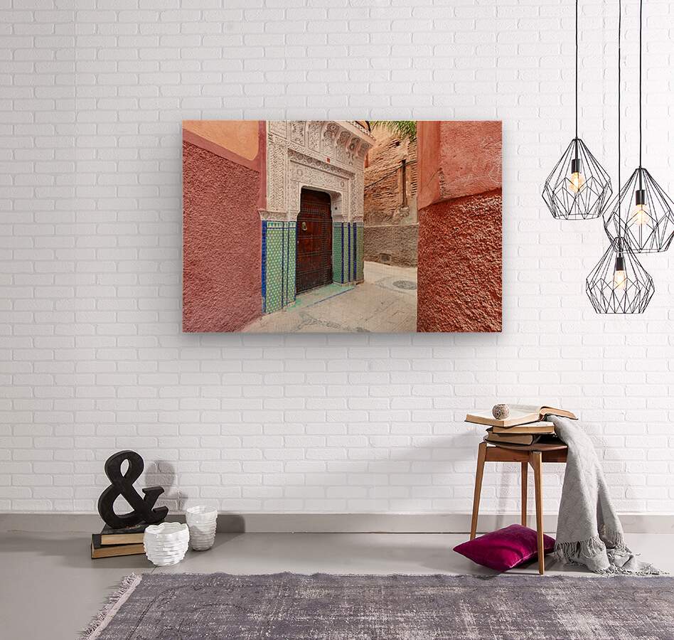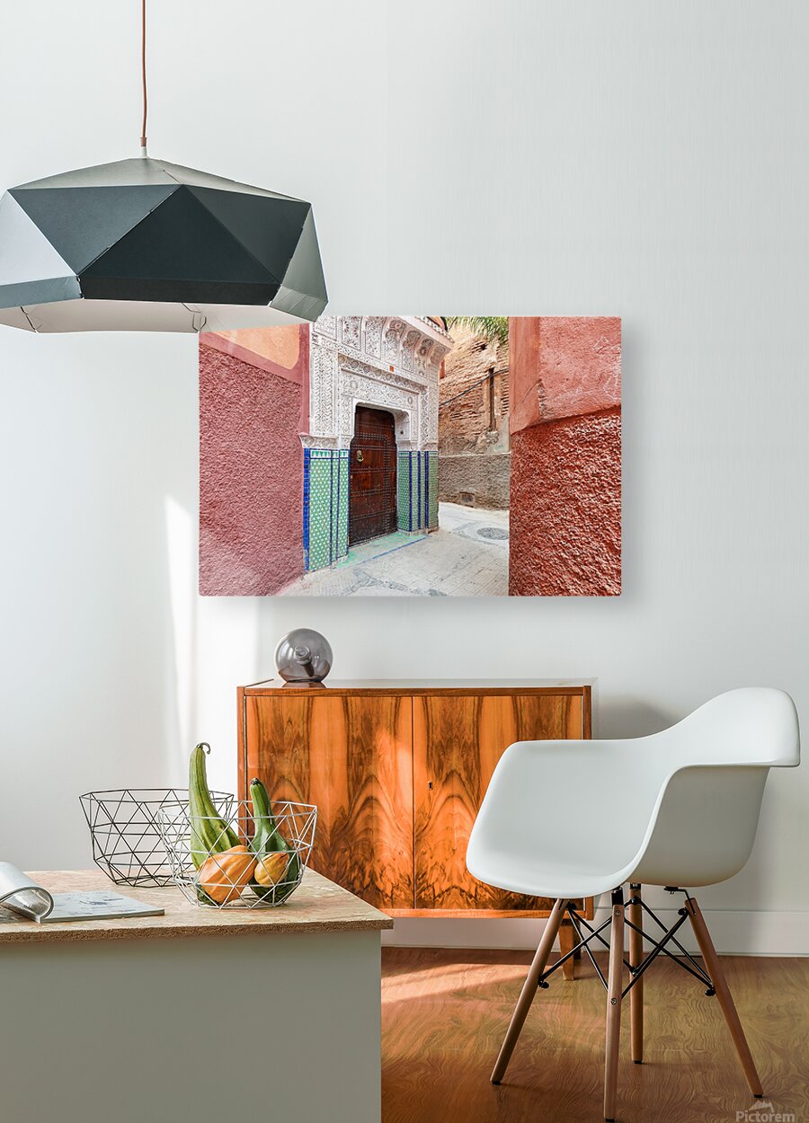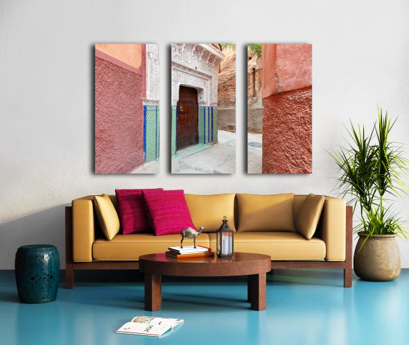 ABOUT THIS ARTWORK: NARROW ALLEYS IN MARRAKESHS MEDINA SHOW TRADITIONAL ARCHITECTUR