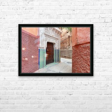 Get this artwork "Narrow alleys in Marrakeshs Medina show traditional architectur" in a framed print.