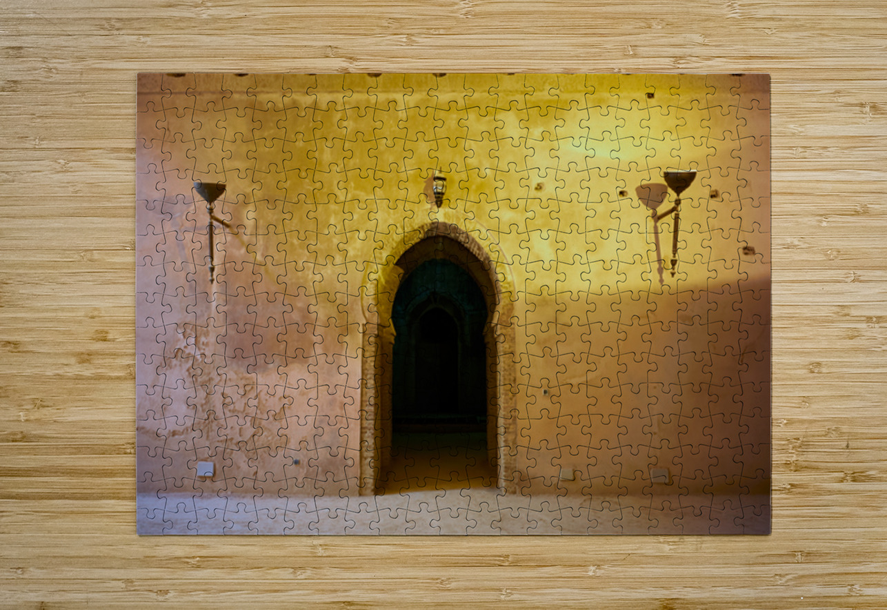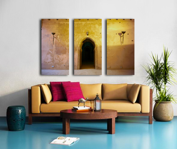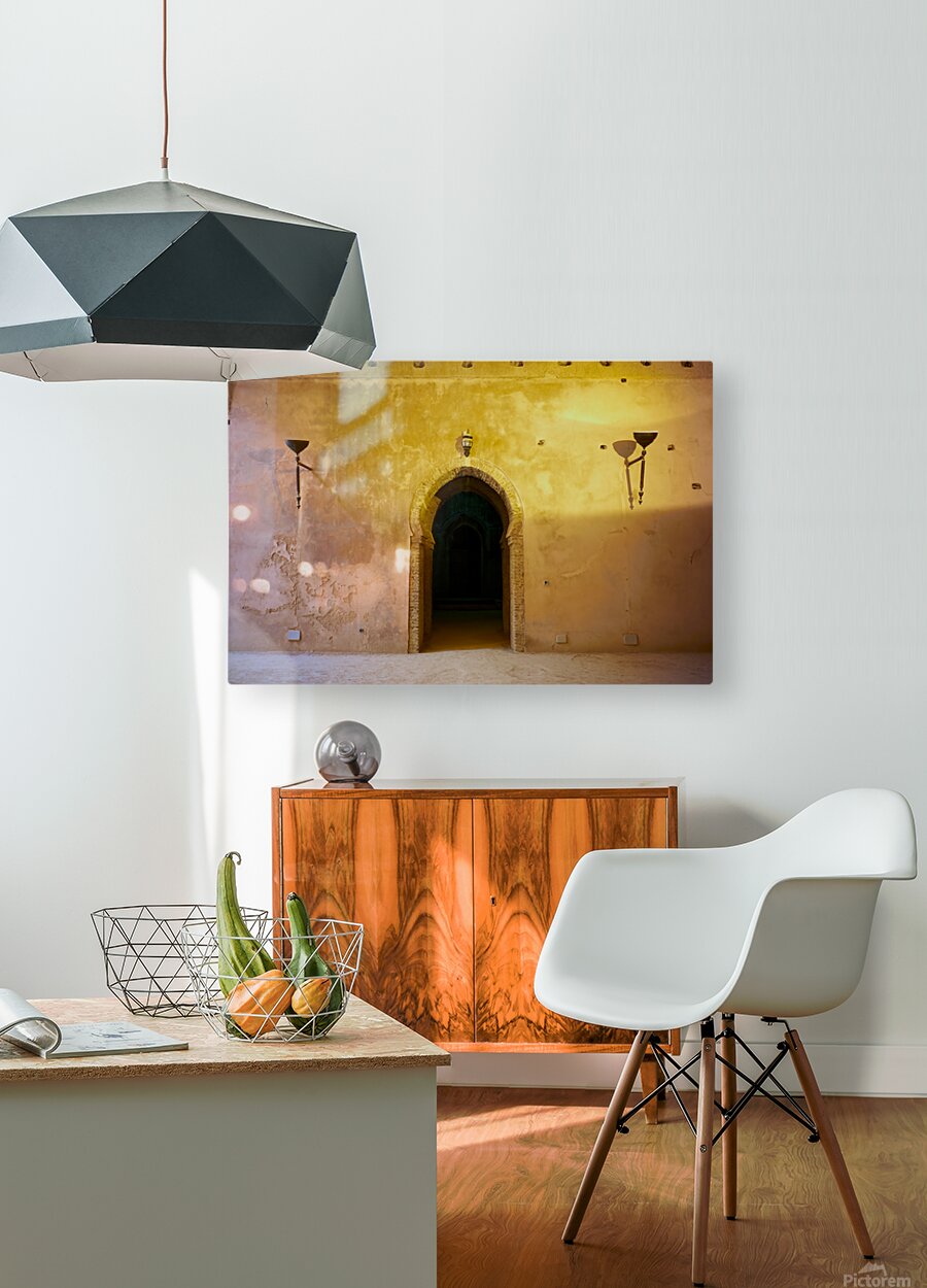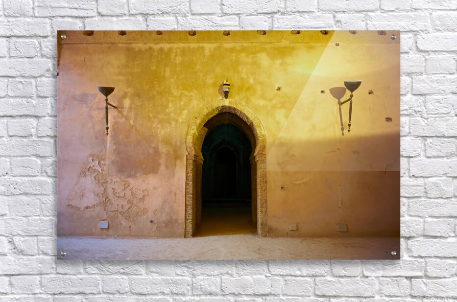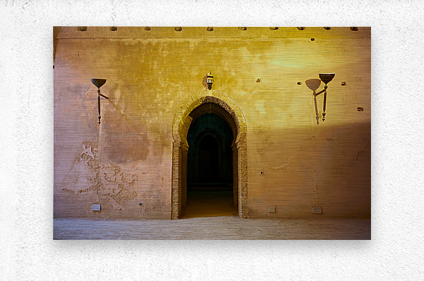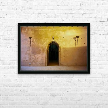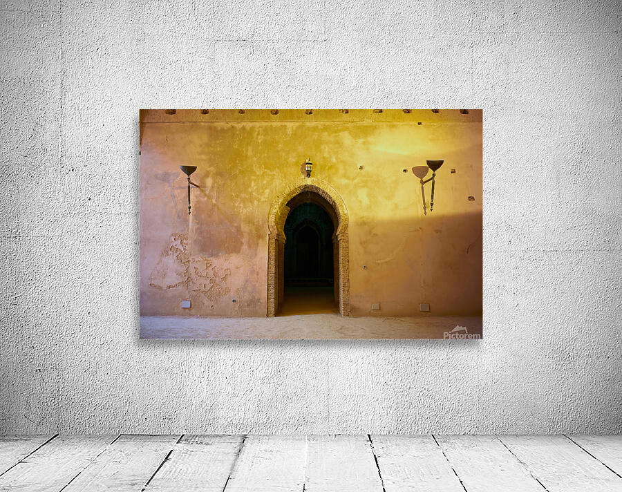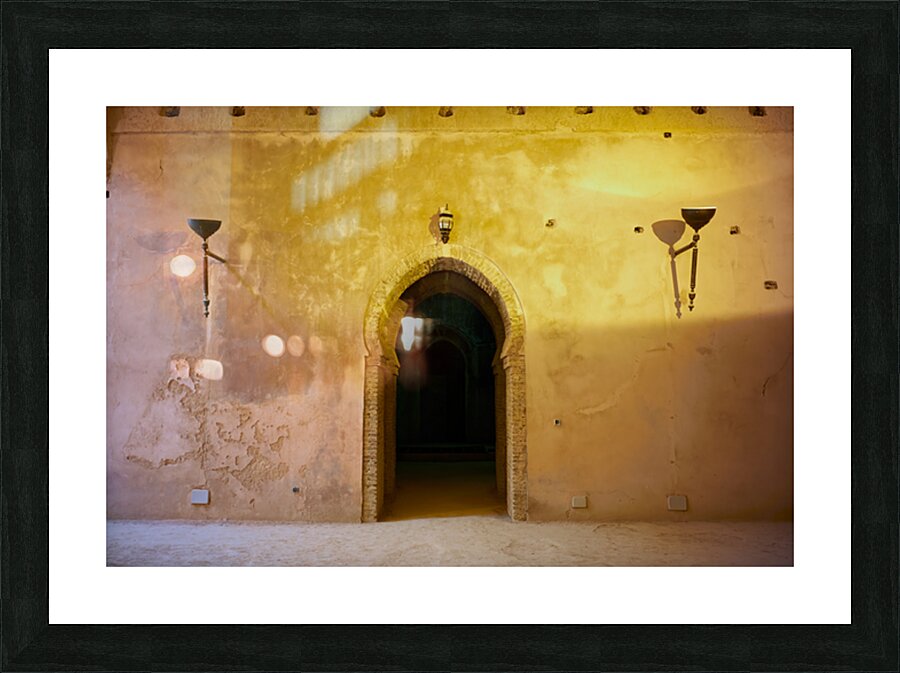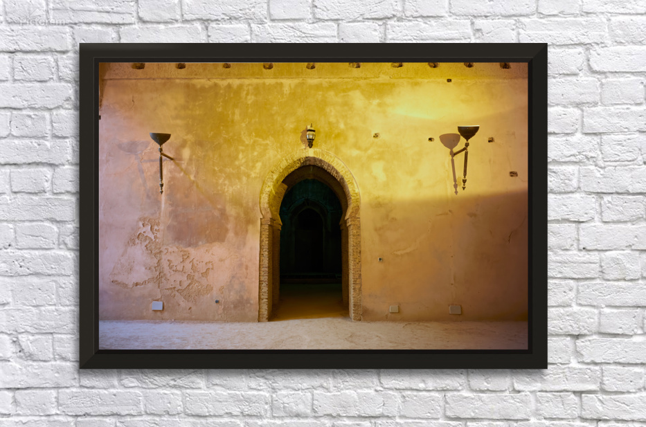 "Exploring the Royal Stables in Meknes Morocco during daylight" in a framed print.