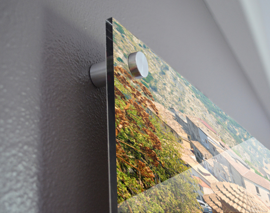 Printed to the edge - Ready to hang - provided with 4 premium polished aluminum stand off ( wall screws and mounting hardware provided )