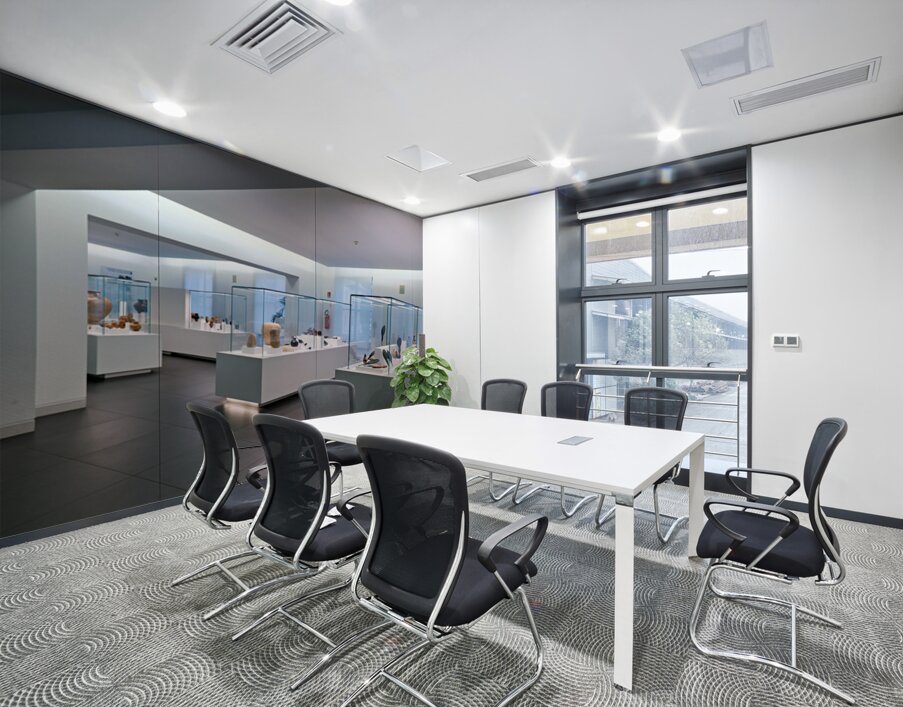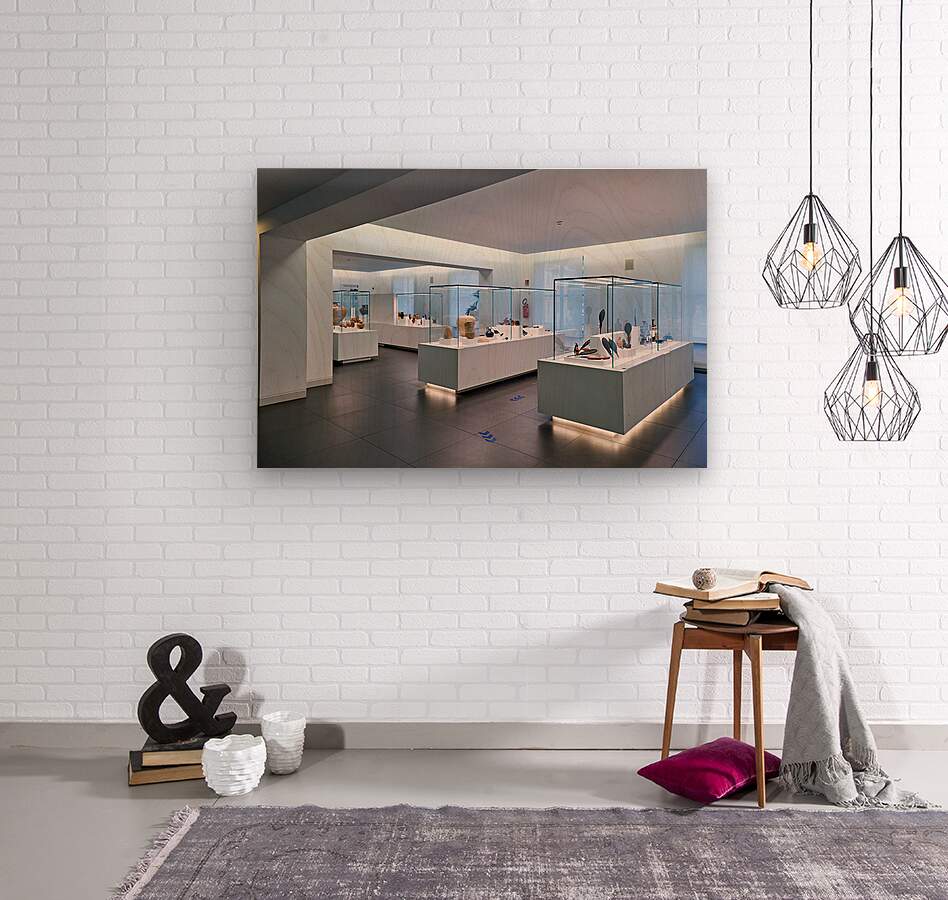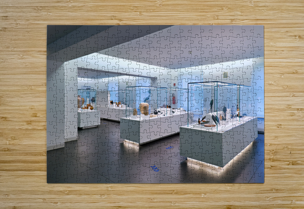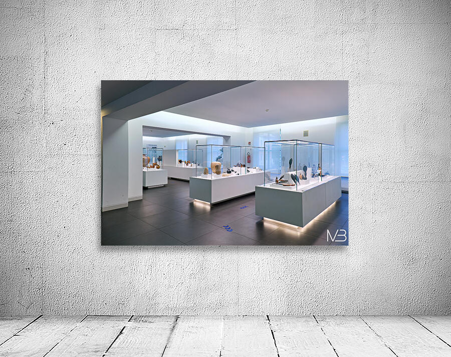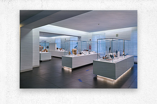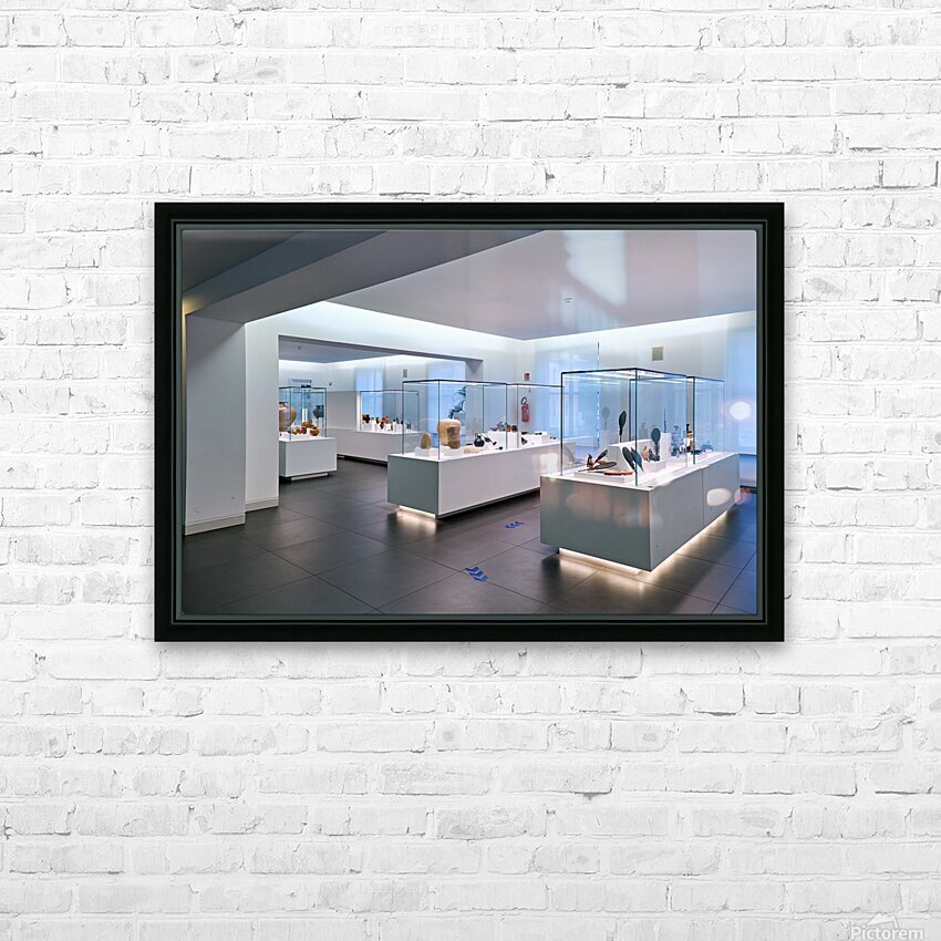 Visitors explore the exhibits at the National Museum of Magna Grecia in Reggio Calabria Italy. Various artifacts are displayed under bright lights.