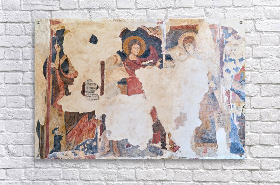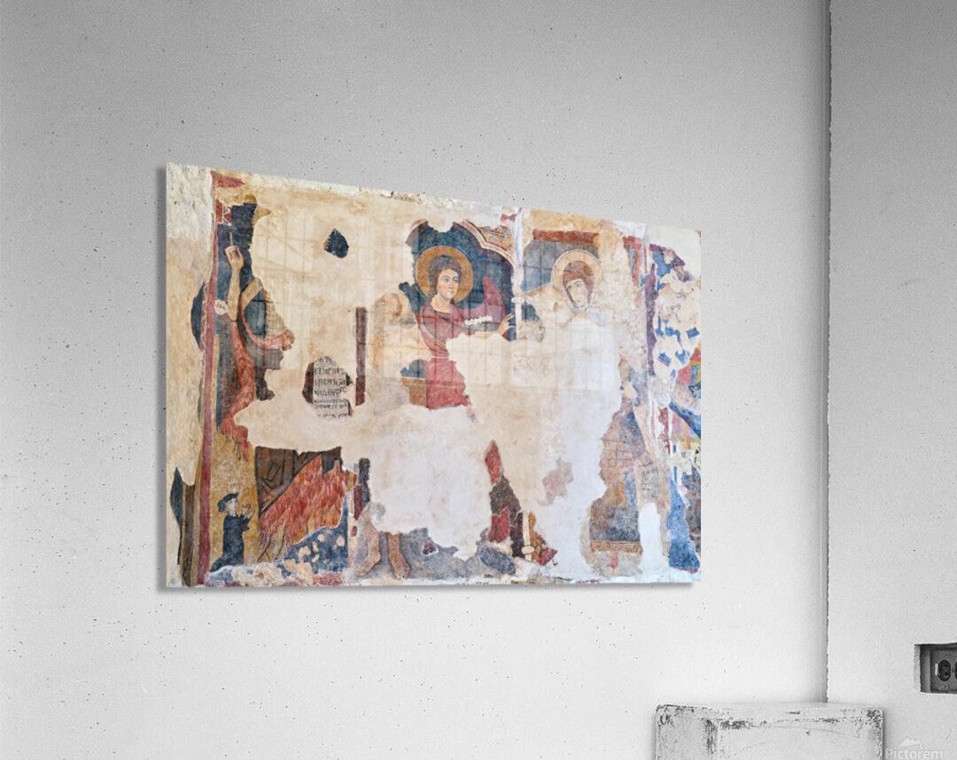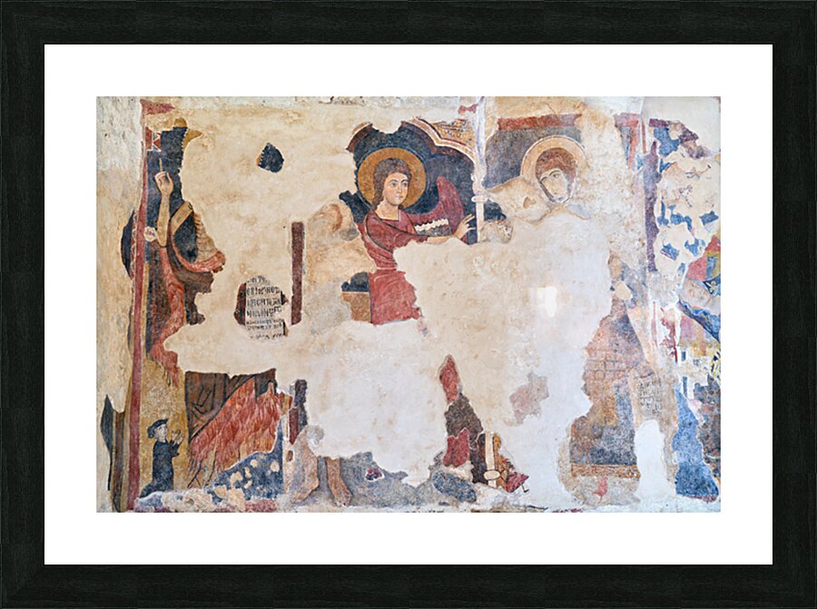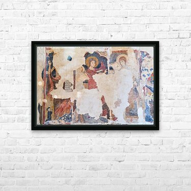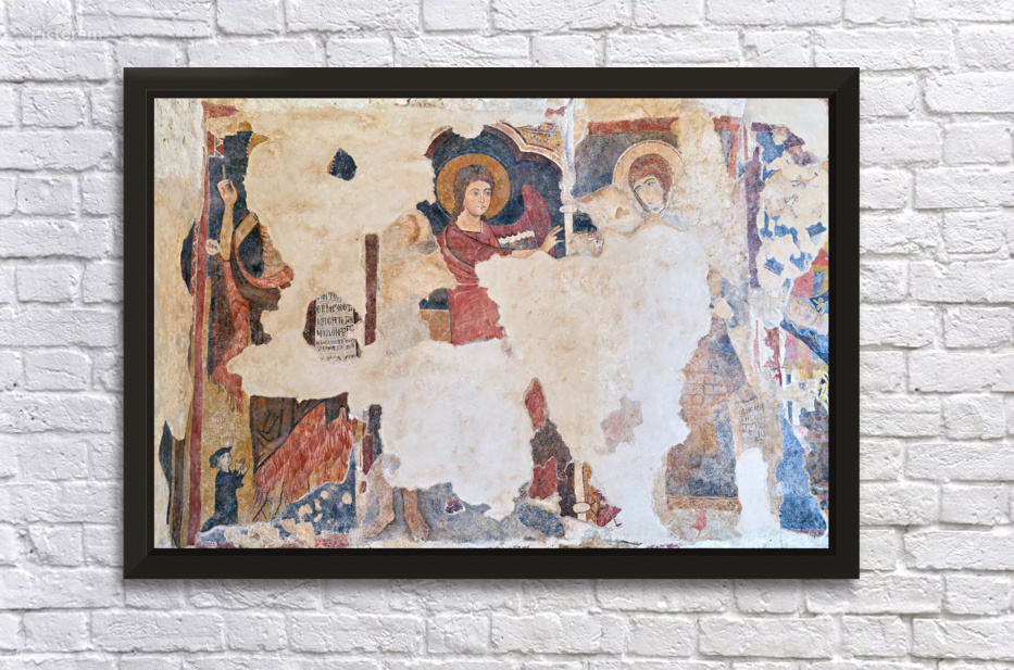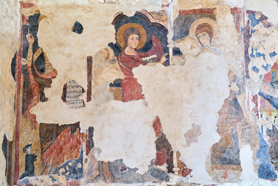 Frescoes inside the Cattolica di Stilo church in Calabria. The art depicts religious figures and scenes from history.