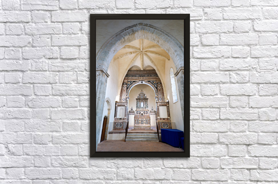 The interior of Saint Francis of Assisi church in Gerace shows the baroque altar. Details of craftsmanship and design surround this sacred space.