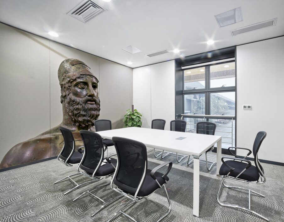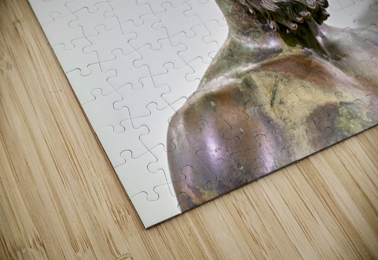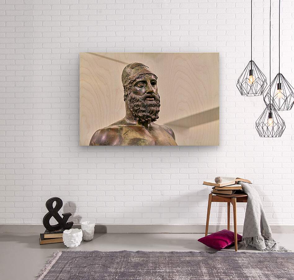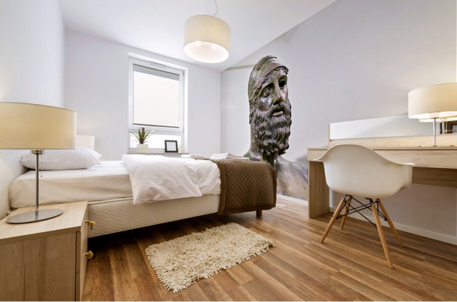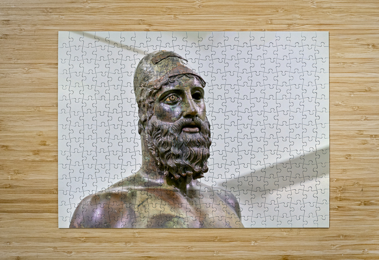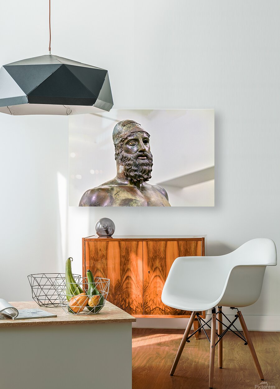 Visitors observe the detailed features of Statue B from the Riace Bronzes. This bronze statue is housed in the National Museum of Magna Grecia.