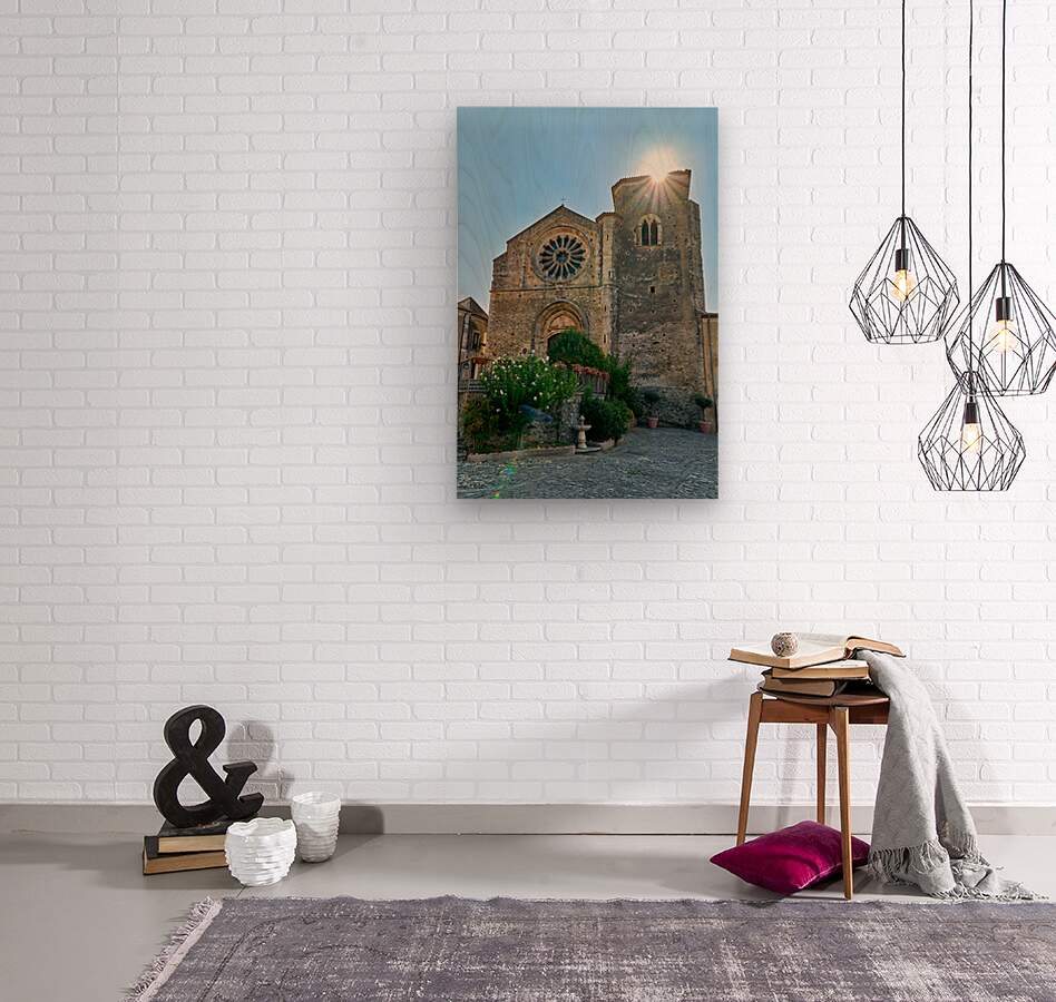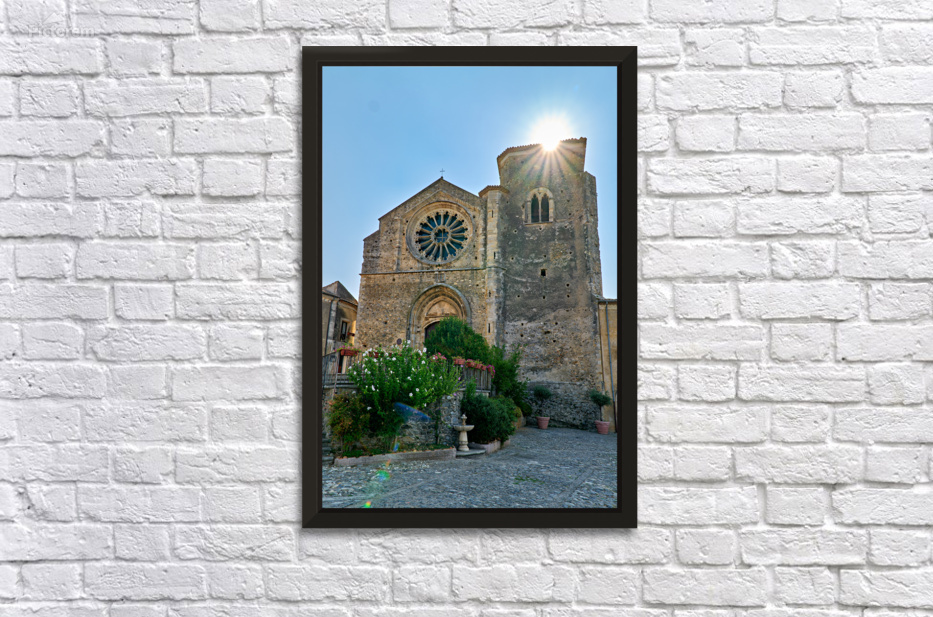 Santa Maria della Consolazione stands in Altomonte Calabria showing its gothic design. The sun shines behind the church creating a striking view.