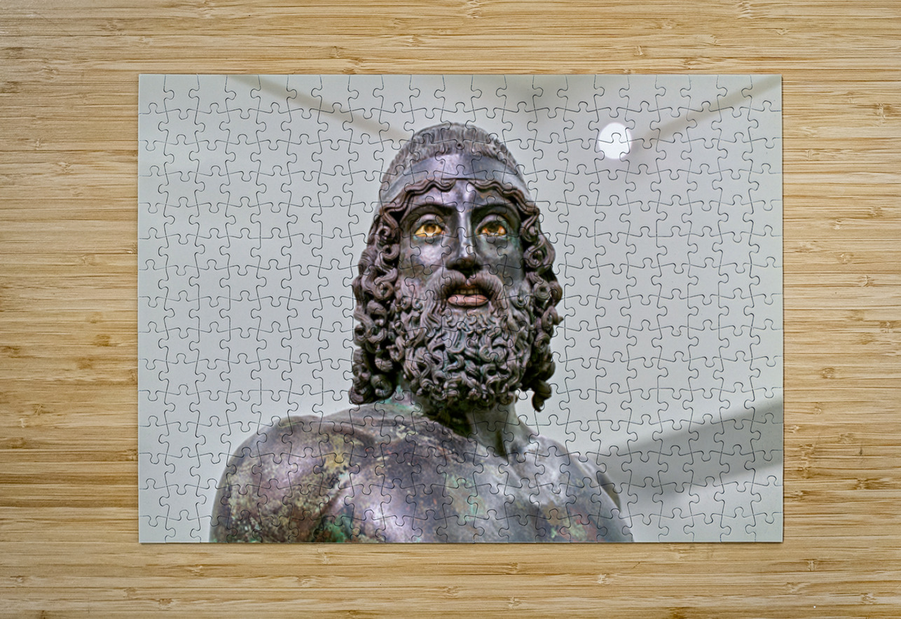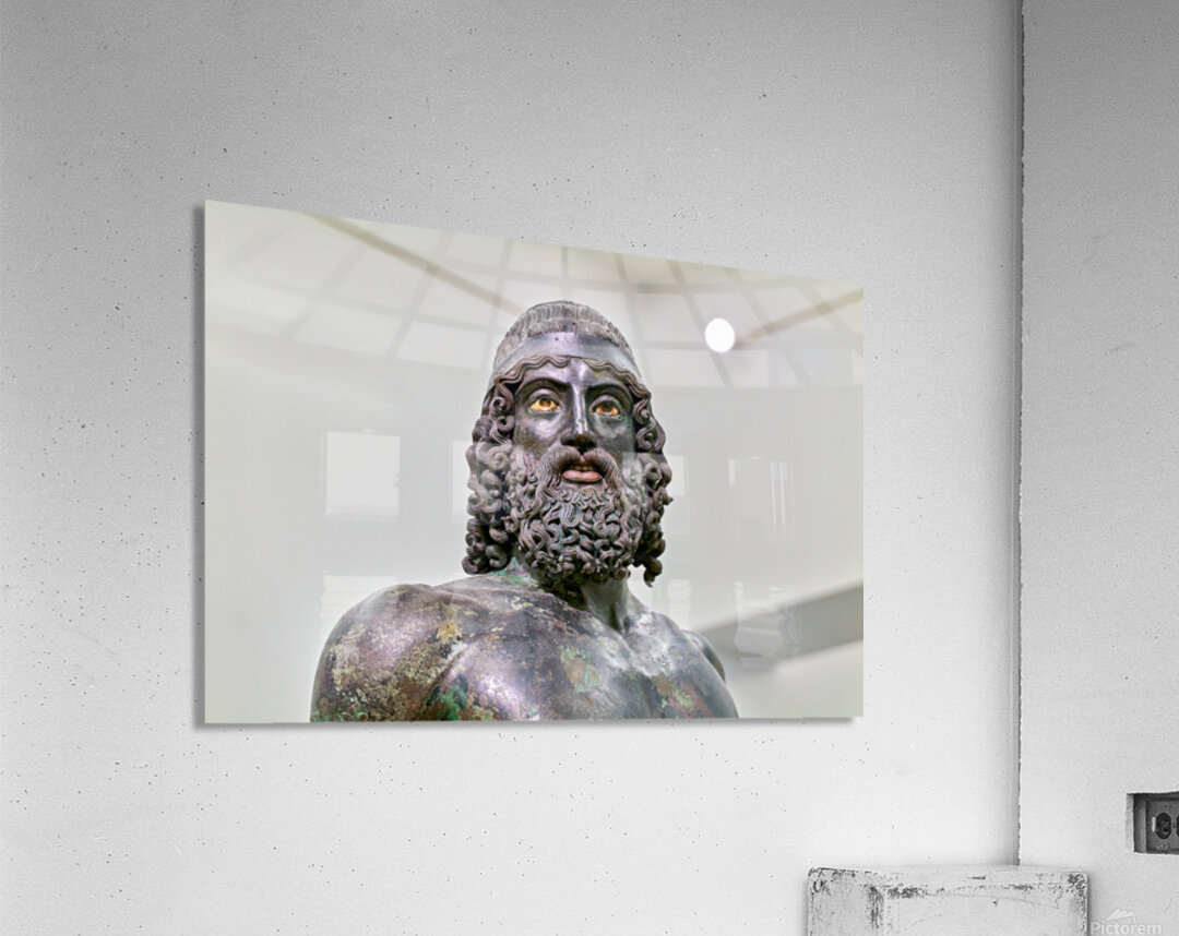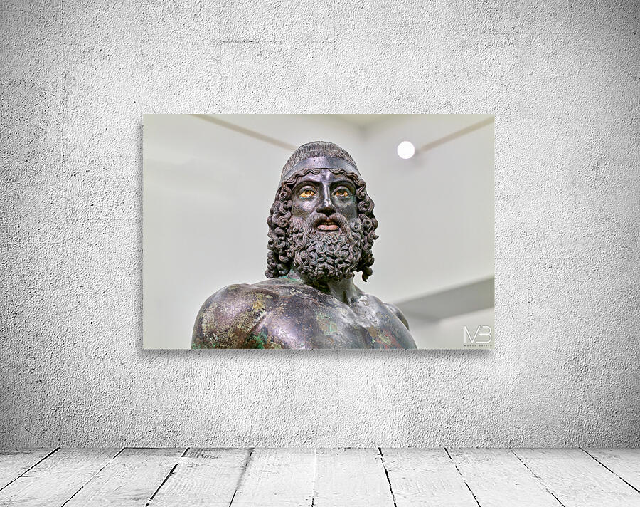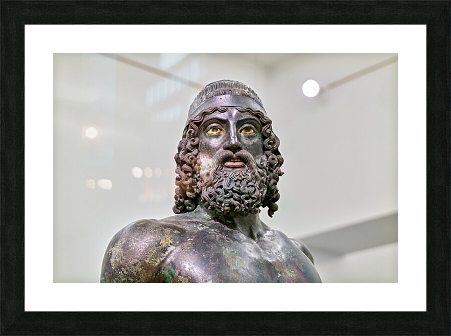 The statue A of the Riace Bronzes stands prominently at the National Museum of Magna Grecia in Reggio Calabria Italy.