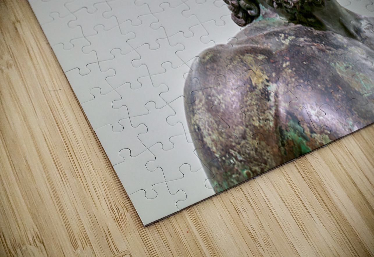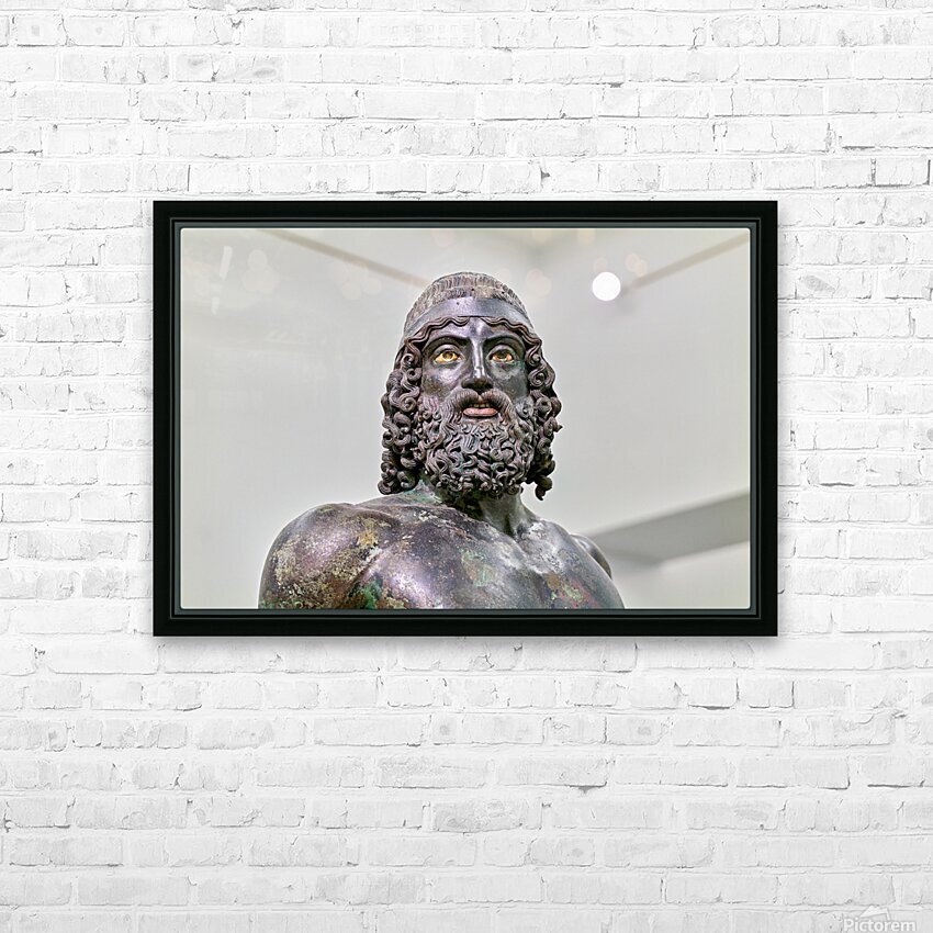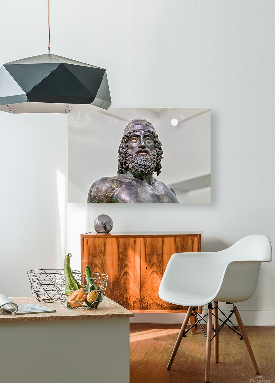 The statue A of the Riace Bronzes stands prominently at the National Museum of Magna Grecia in Reggio Calabria Italy.