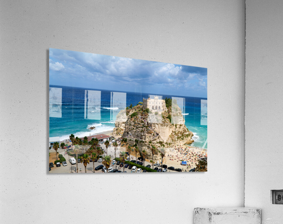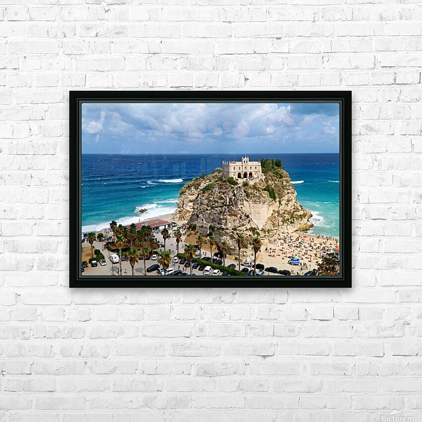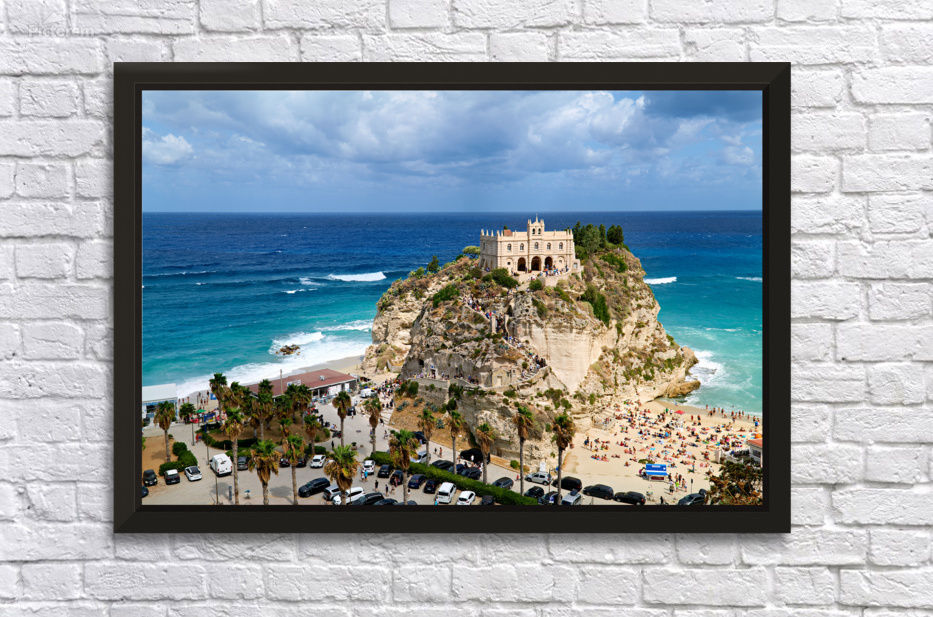"View of Santa Maria dellIsola Monastery in Tropea Calabria Ital" in a framed print.