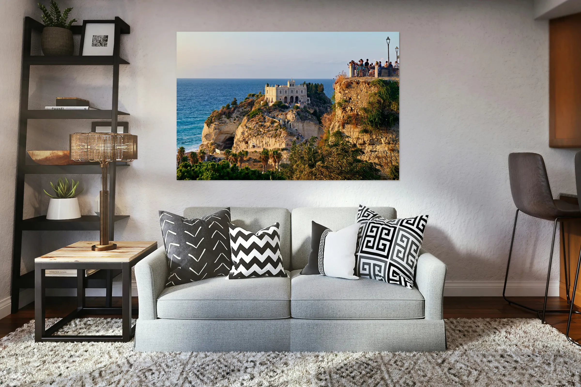 ABOUT THIS ARTWORK: TOURISTS VIEW SANTA MARIA DELLISOLA MONASTERY IN TROPEA CALABRI