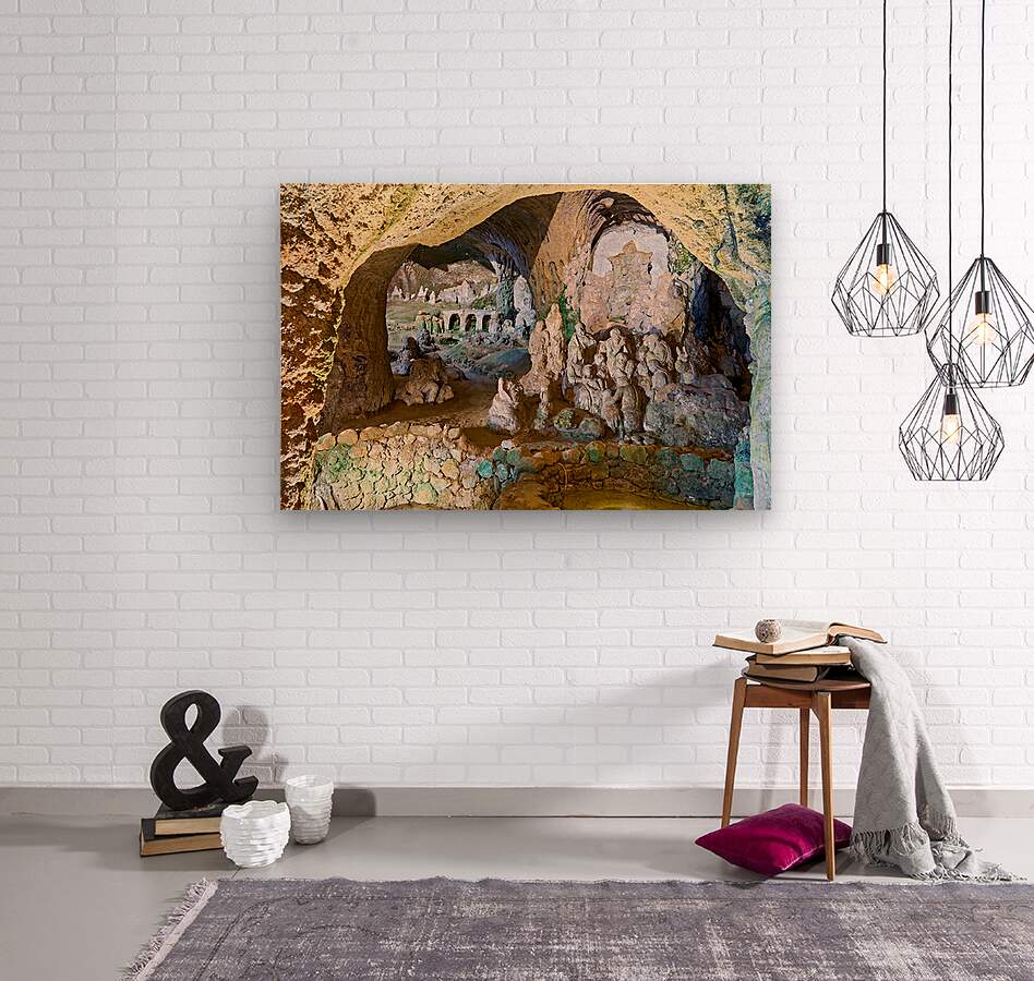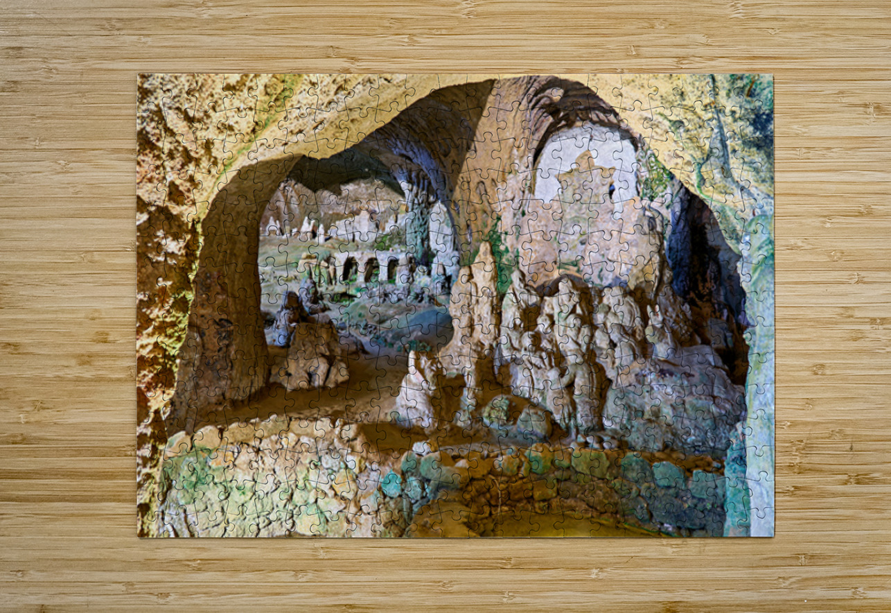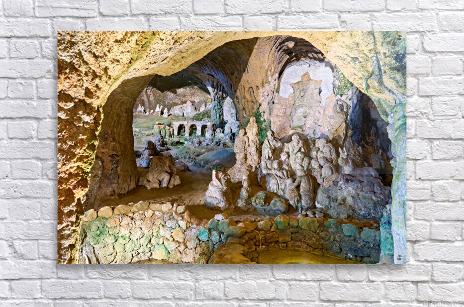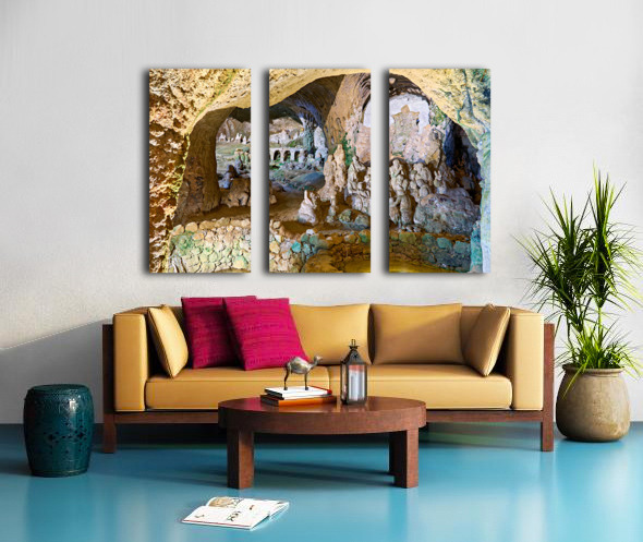 The cave church of Piedigrotta in Pizzo Calabro features unique rock formations and sculptures. Visitors explore this historical site.