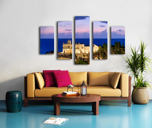 Get this artwork "Tropea offers views of the sea and buildings at sunset in Calabr" in a framed print.
